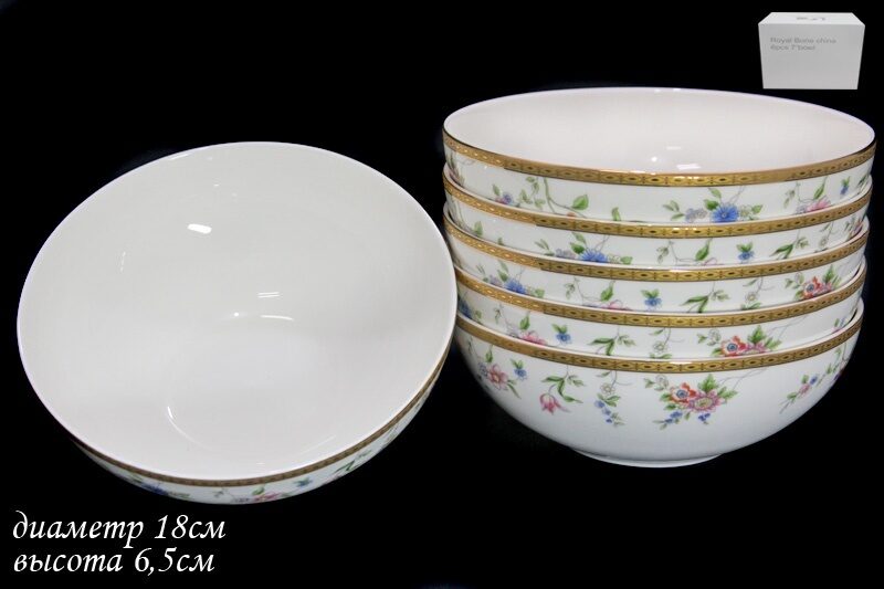 Набор из 6 салатников 18см. в подарочной упаковке цветочная поляна. костяной фарфор Lenardi