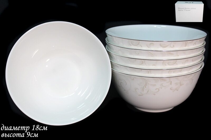Набор из 6 салатников 18см. серый шелк в подарочной упаковке костяной фарфор Lenardi