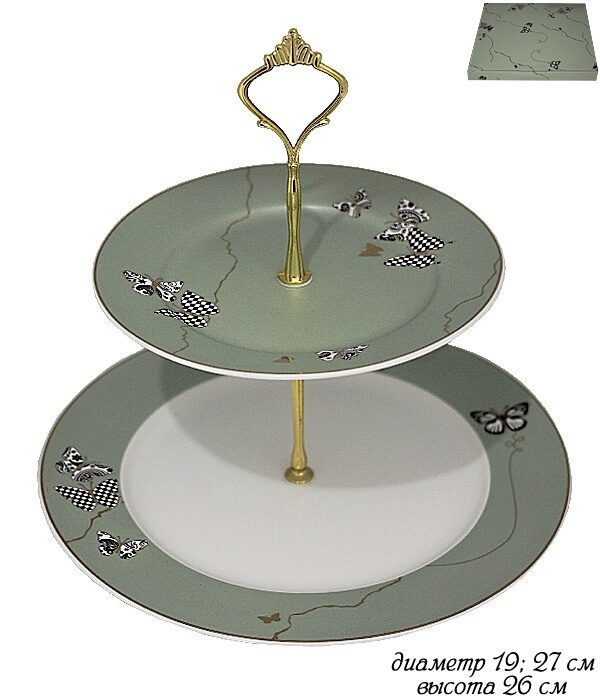 Двухъярусная этажерка 19, 27 см Butterfly в под.уп. фарфор