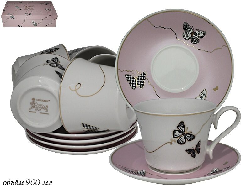 Чайный набор 12пр. 220 мл Butterfly в под.уп. фарфор