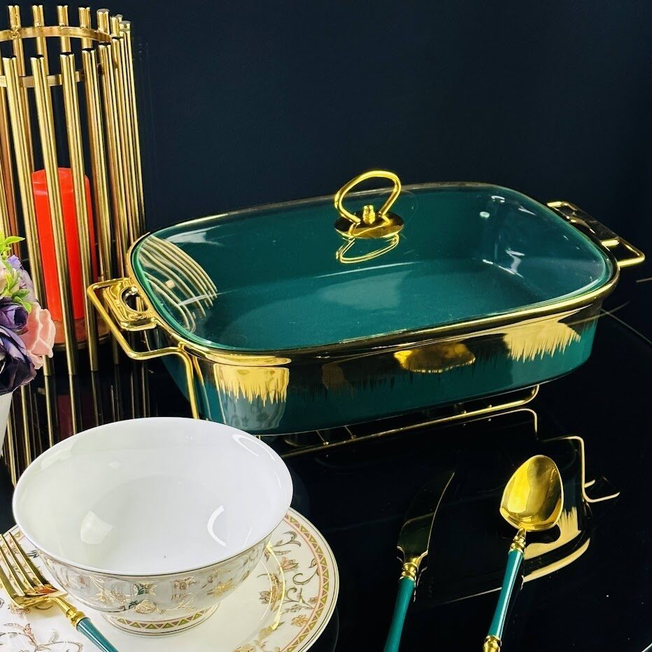 Прямоугольный сервировочный мармит 28см с крышкой на подставке в подарочной упаковке фарфор Lenardi