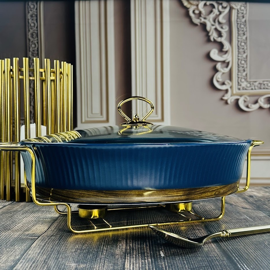 Овальный сервировочный мармит 38см(2,6л) с крышкой Wood на подставке в под.уп. фарфор