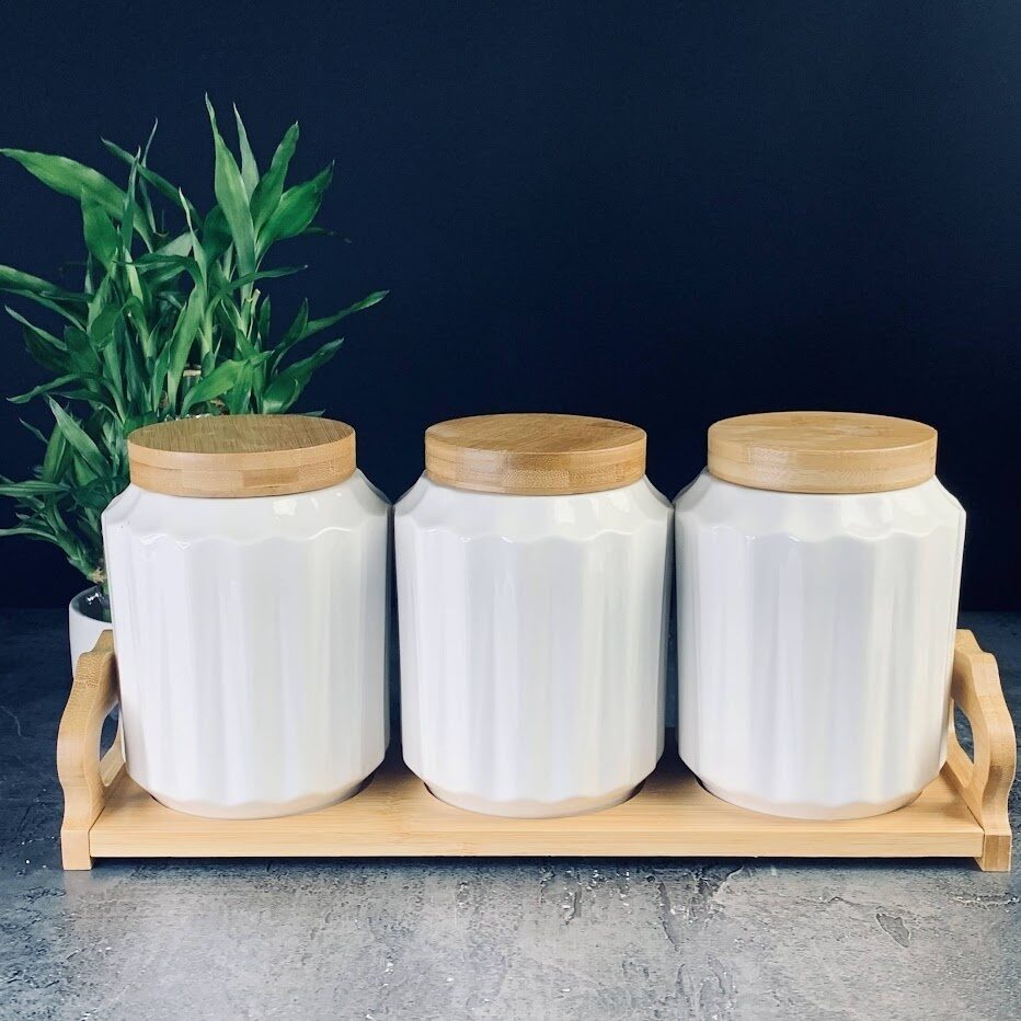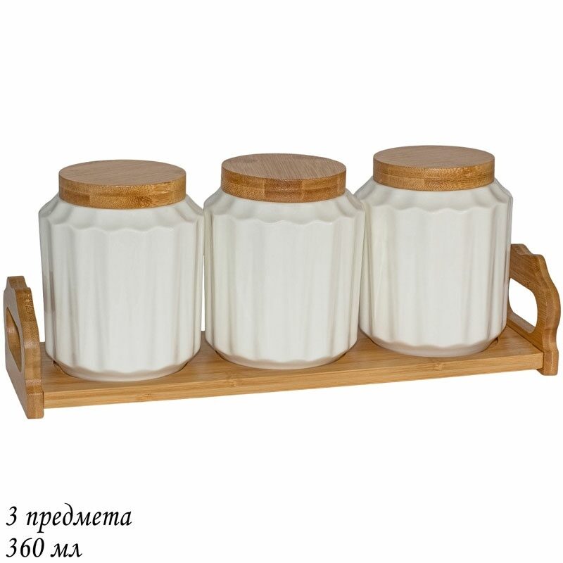 Набор из 3 банок 360мл Bamboo на подставке в подарочной упаковке фарфор,бамбук Lenardi