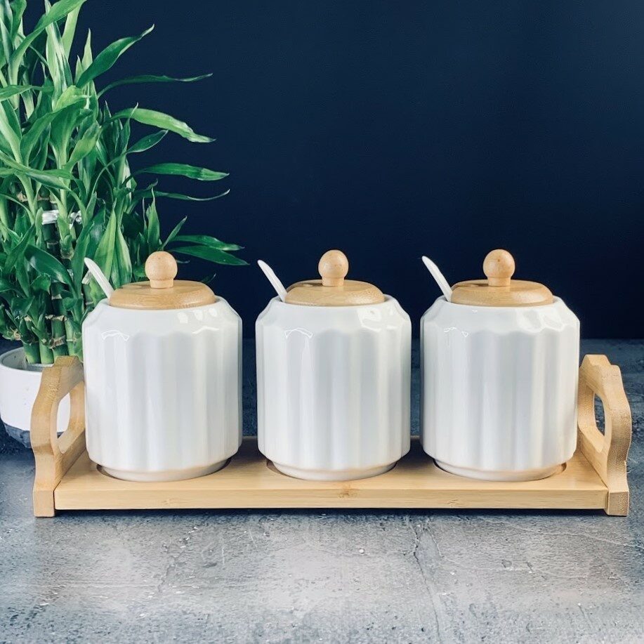 Набор из 3 банок 360мл Bamboo с ложками на подставке в подарочной упаковке фарфор,бамбук Lenardi