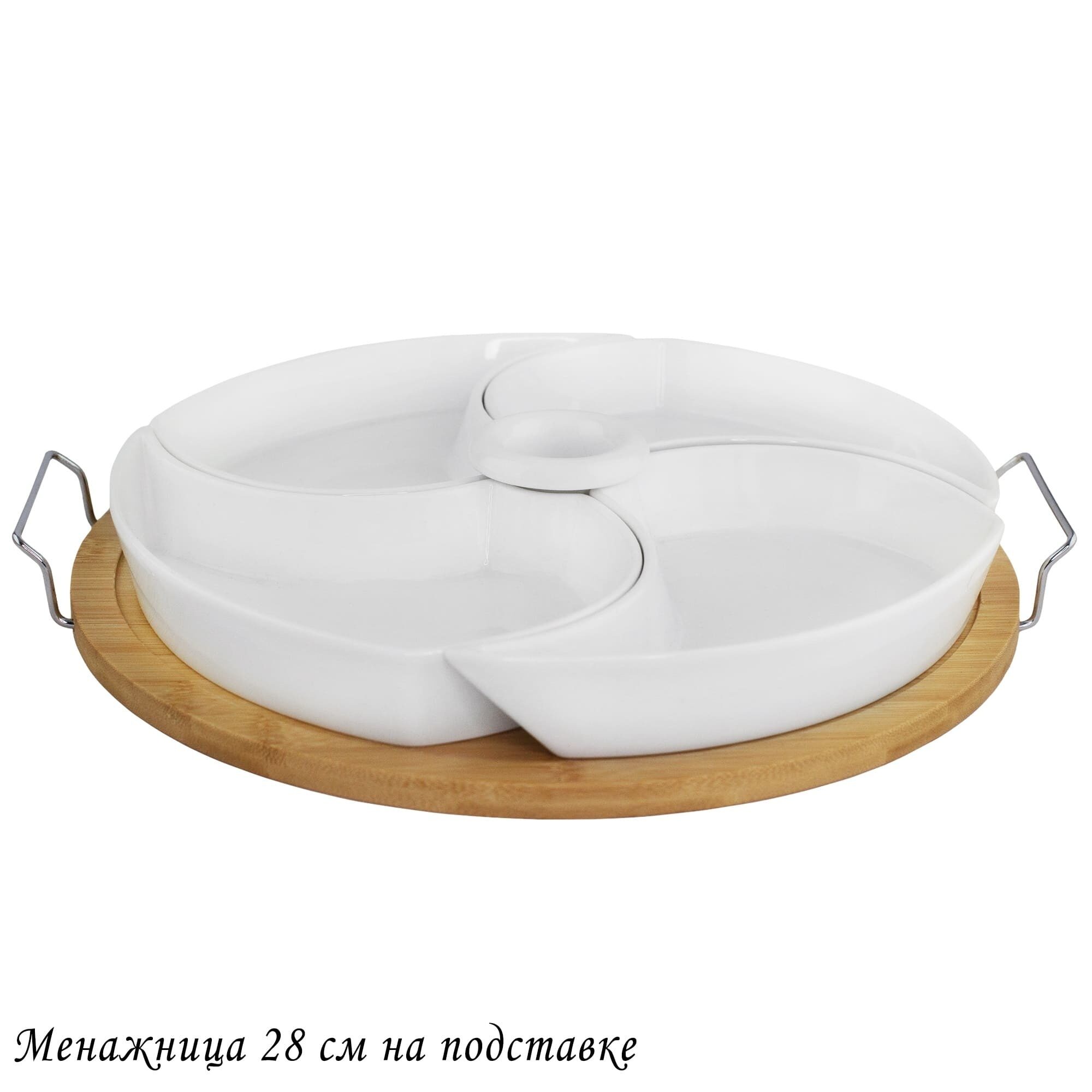 Менажница 28см на подставке bamboo в под.уп. фарфор,бамбук.