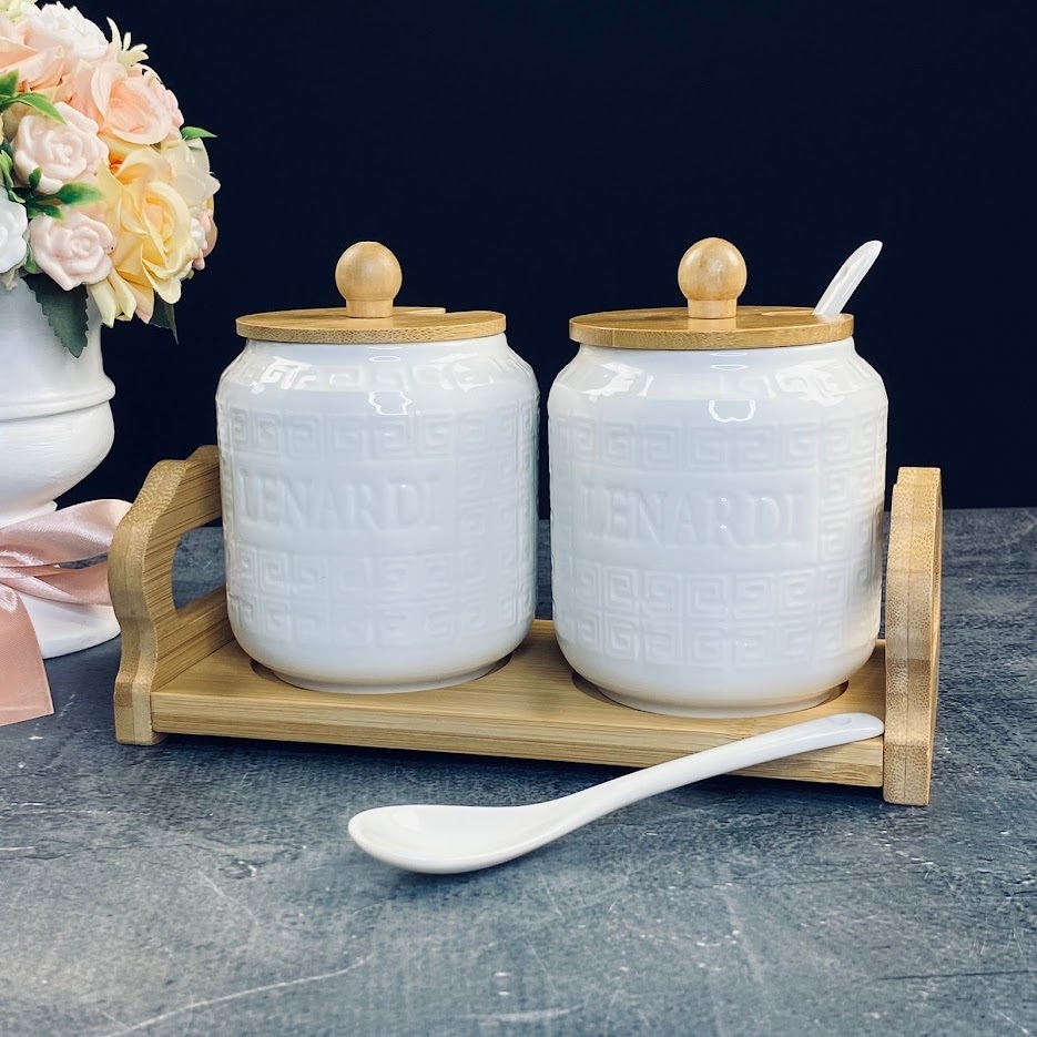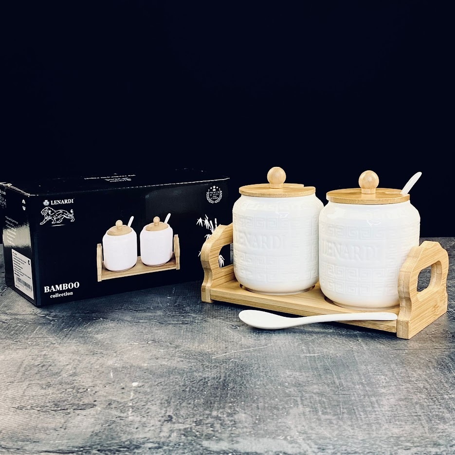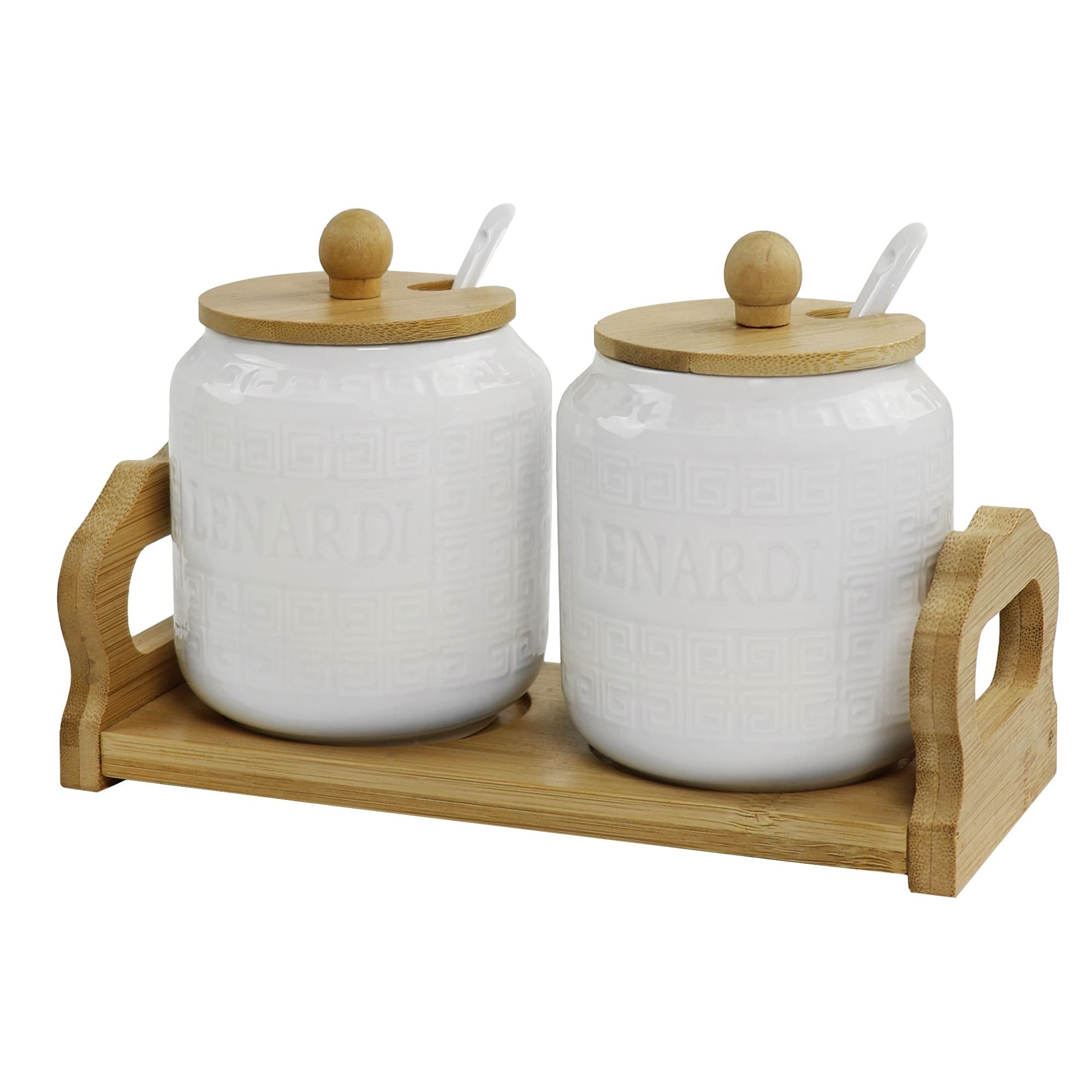 Набор из 2 банок 350мл для специй с ложками на подставке Bamboo в под.уп. фарфор