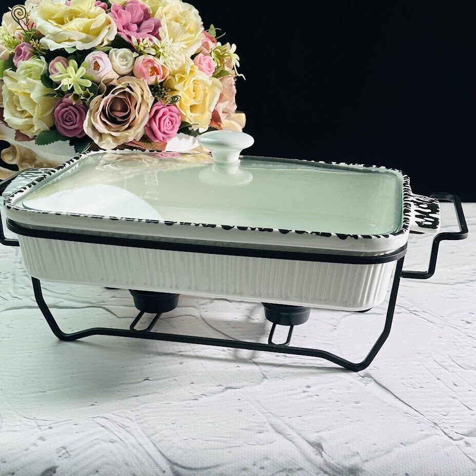 Сервировочный прямоугольный мармит 37х23х12см на подставке в подарочной упаковке фарфор Lenardi
