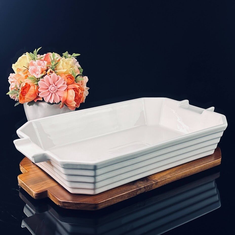 Прямоугольное блюдо для запекания 36см с дерев.крышкой/подставкой в под.уп. фарфор