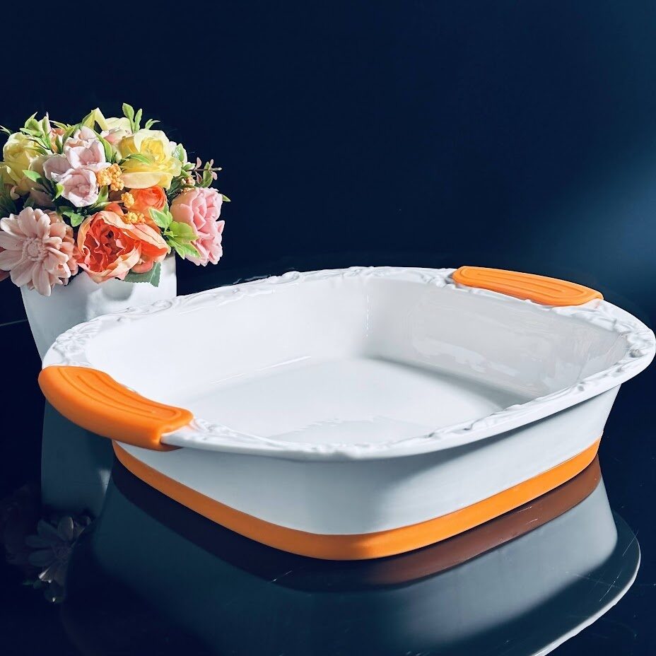 Квадратное блюдо для запекания 33см с силикон.ручками в под.уп. фарфор