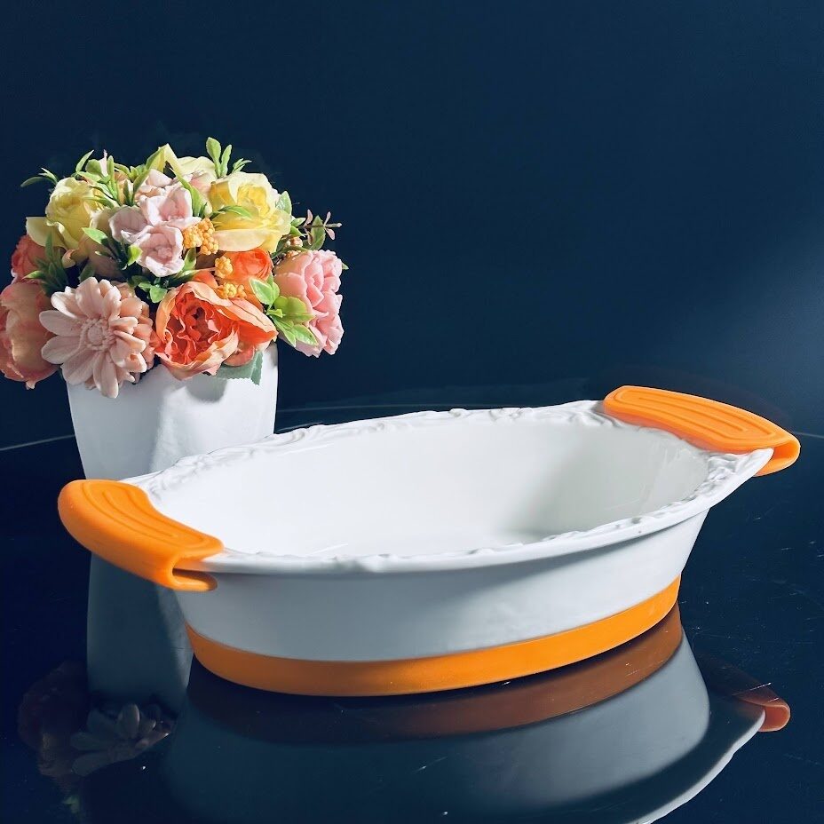 Овальное блюдо для запекания 29х19,5х6,5см с силикон.ручками в под.уп. фарфор