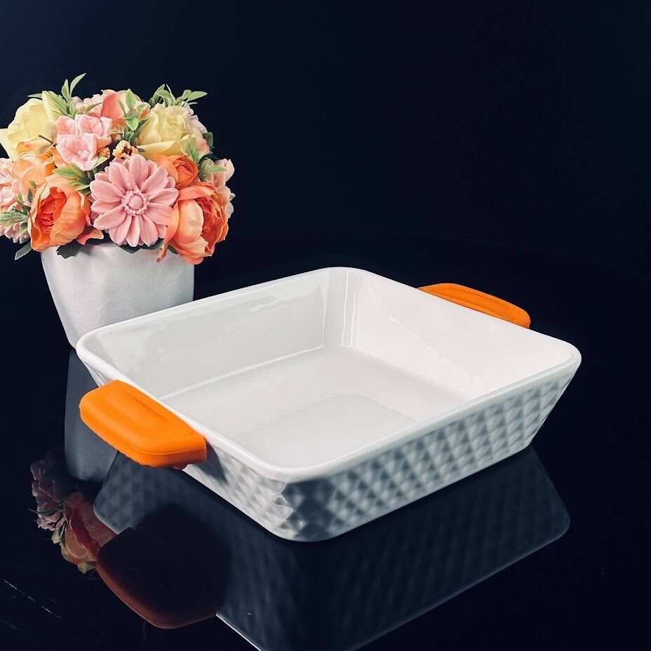 Квадратное блюдо для запекания 28см с силикон.ручками в под.уп. фарфор