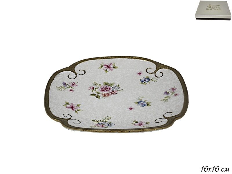 Квадратное блюдо 16см в подарочной упаковке фарфор Lenardi