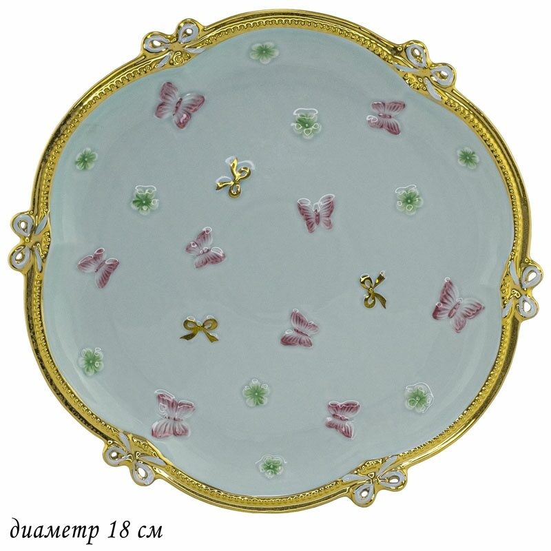 Круглое блюдо 18смбабочки ментол в подарочной упаковке фарфор Lenardi