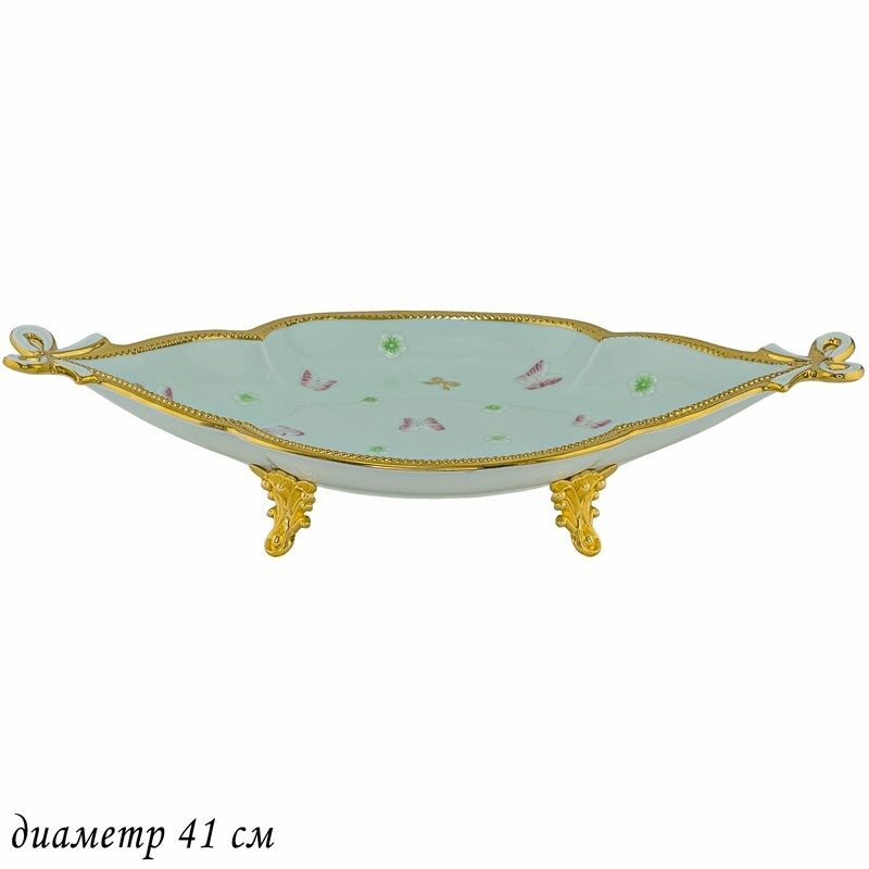 Блюдо 41см бабочки ментол на ножках в подарочной упаковке фарфор Lenardi