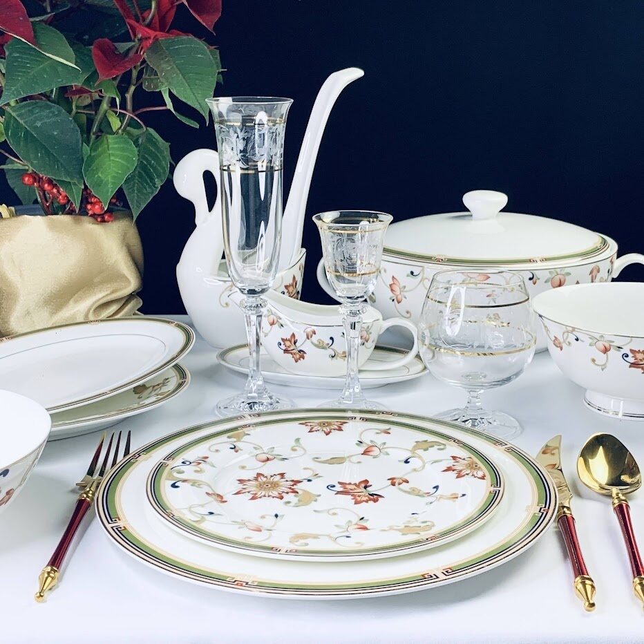 Обеденный сервиз 101пр. кассиопея в подарочной упаковке костяной фарфор lenardi. Наполнение: 12 шт- тарелки d=26см 12 шт- тарелки d=21,5см 12 шт- тарелки глубокие d=23см 12 шт. салатник 11,5 см 12шт. салатник 18 см 2 шт- блюдо овальное длинна 36см 2 шт- блюдо овальное длинна 23см 1 +1 пр- супник 2 литра-1шт + крышка-1шт 1 шт ложка 1шт подставка под ложку Лебедь 3 шт- салатники d=15,5см 2 пр- соусник-1шт + блюдце-1шт 2пр заварник +крышка 2пр сахарница + крышка 12 шт чашки 12 шт- блюдца  развернуть описание ▼
