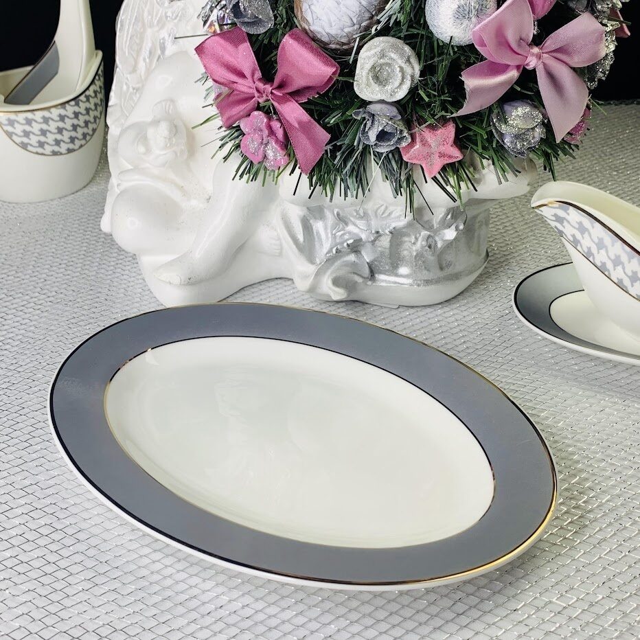 Овальное блюдо 23см Earl Grey в подарочной упаковке костяной фарфор Lenardi