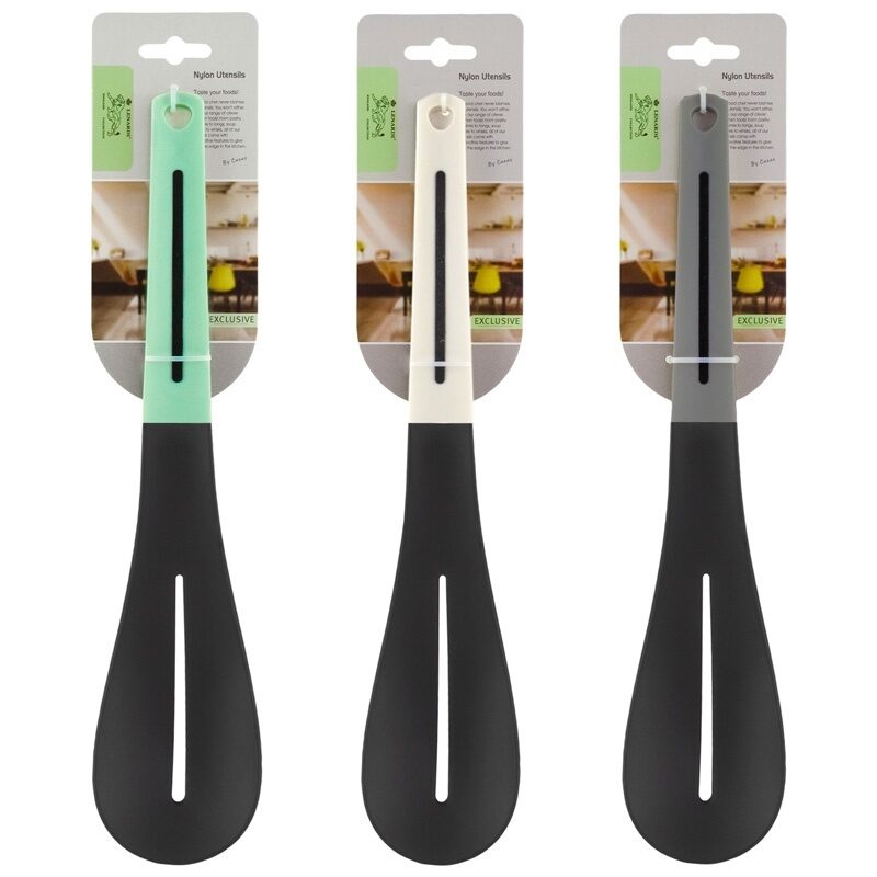 Ложка кухонная с прорезями 31,5 см lenardi. -Ложкаодходит для использования на всех поверхностях для приготовления пищи, включая антипригарную посуду Эргономичный дизайн, удобная ручка -Избегайте применения с открытым огнем -Температурный режим до +220 С - Уход: промыть теплой водой с использованием средства для мытья посуды, можно мыть в посудомойке -Не оставляйте в посуде во время приготовления пищи. Для предотвращения окрашивания избегайте использования с сильными красителями, такими как куркума