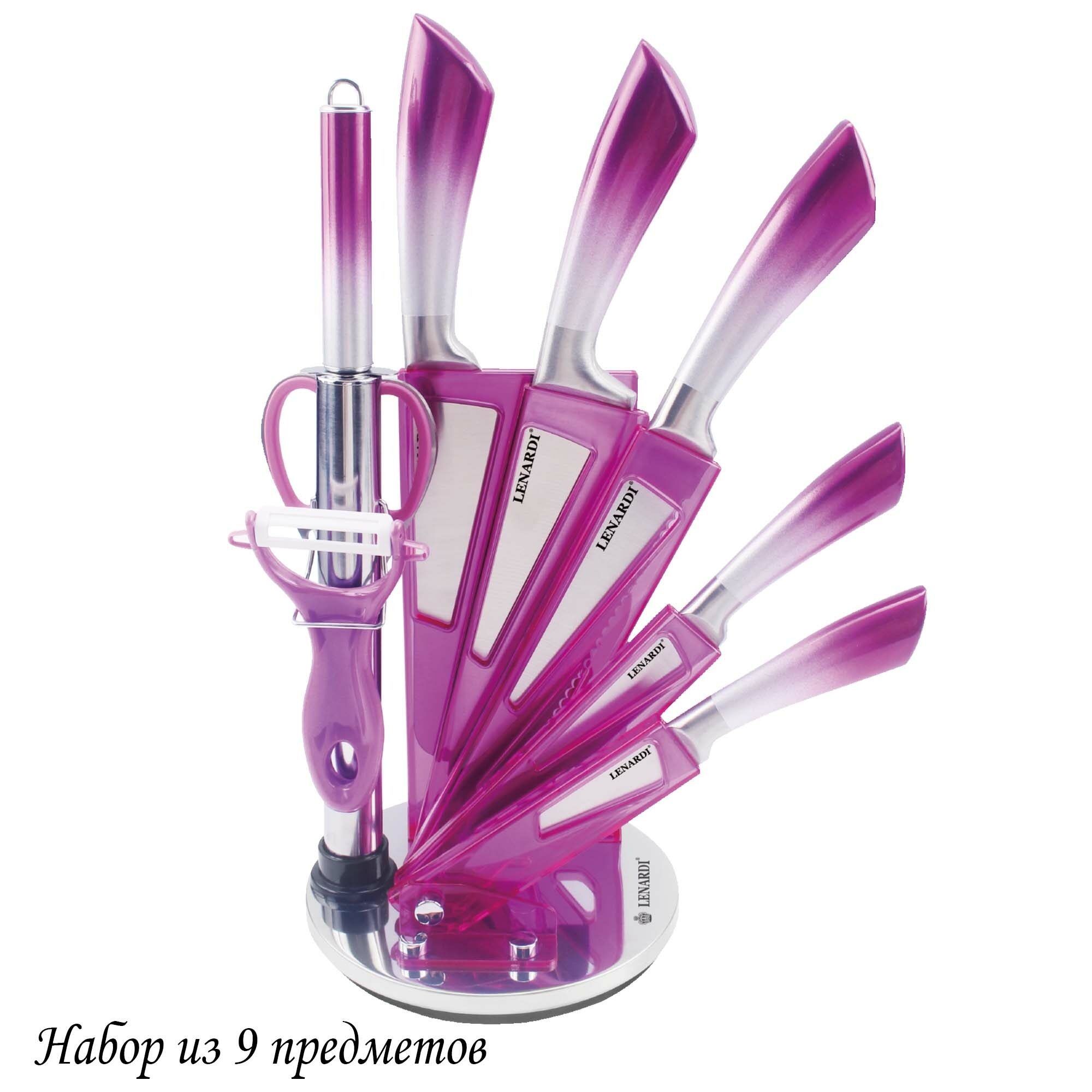 Набор ножей 9пр. на подставке в подарочной упаковке нержавеющая сталь Lenardi