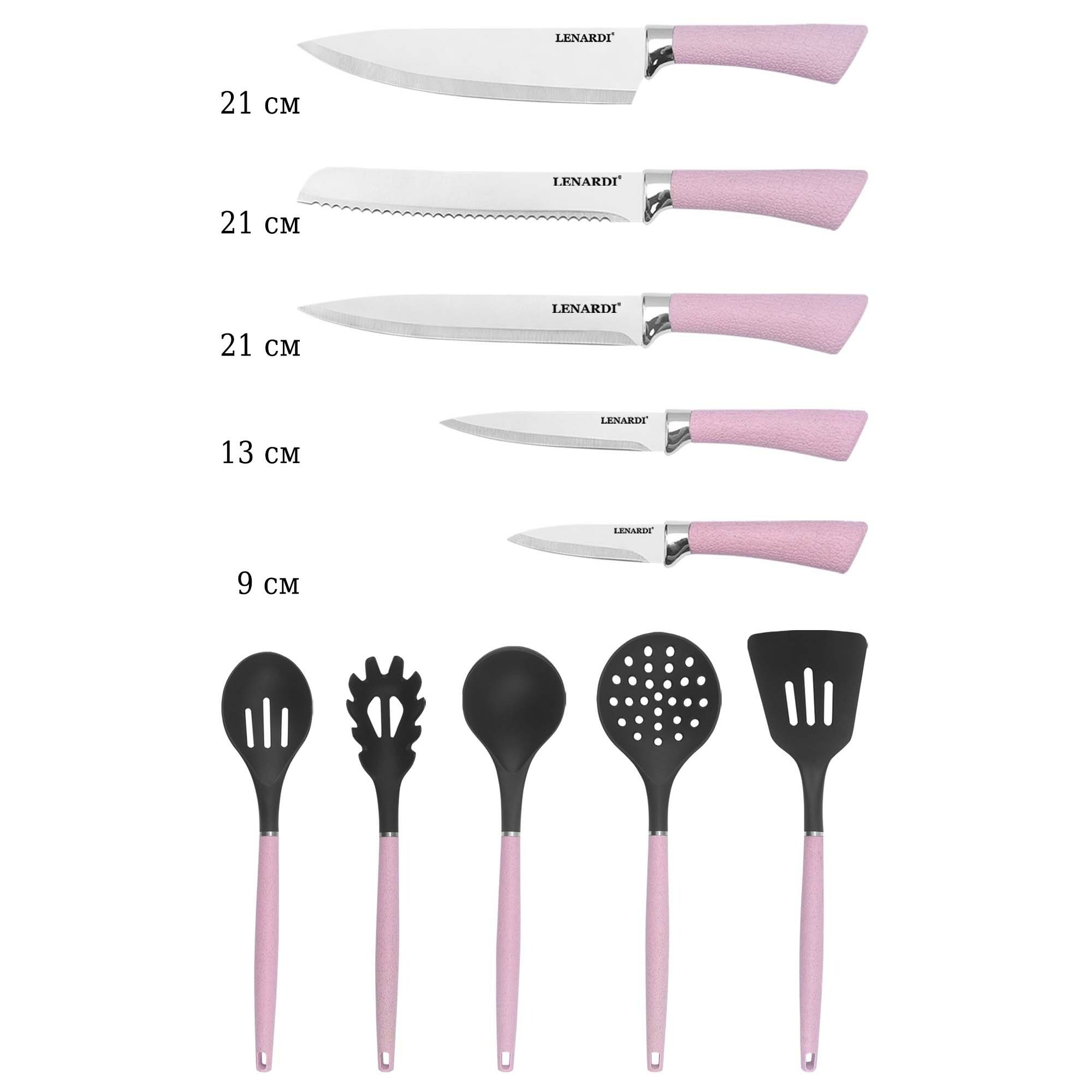 Набор ножей и кухонных принадлежностей 12пр. на подставке в подарочной упаковке нержавеющая сталь Lenardi