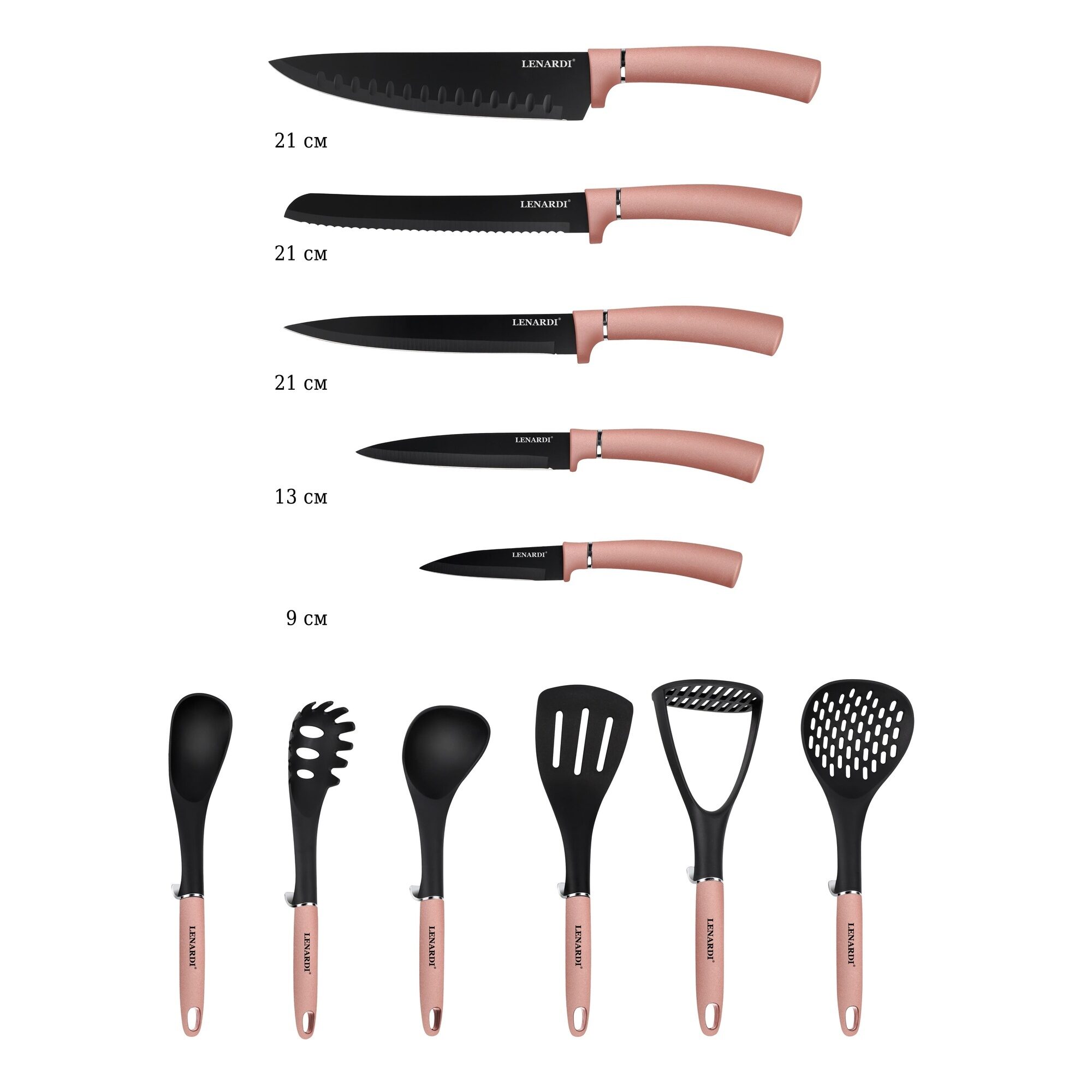 Набор ножей и кухонных принадлежностей 12пр. на подставке в подарочной упаковке нержавеющая сталь Lenardi