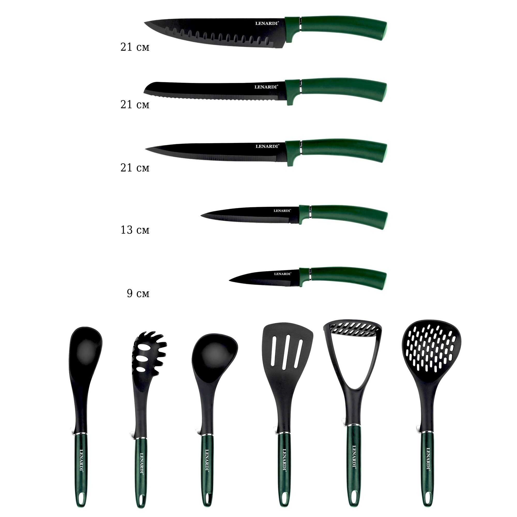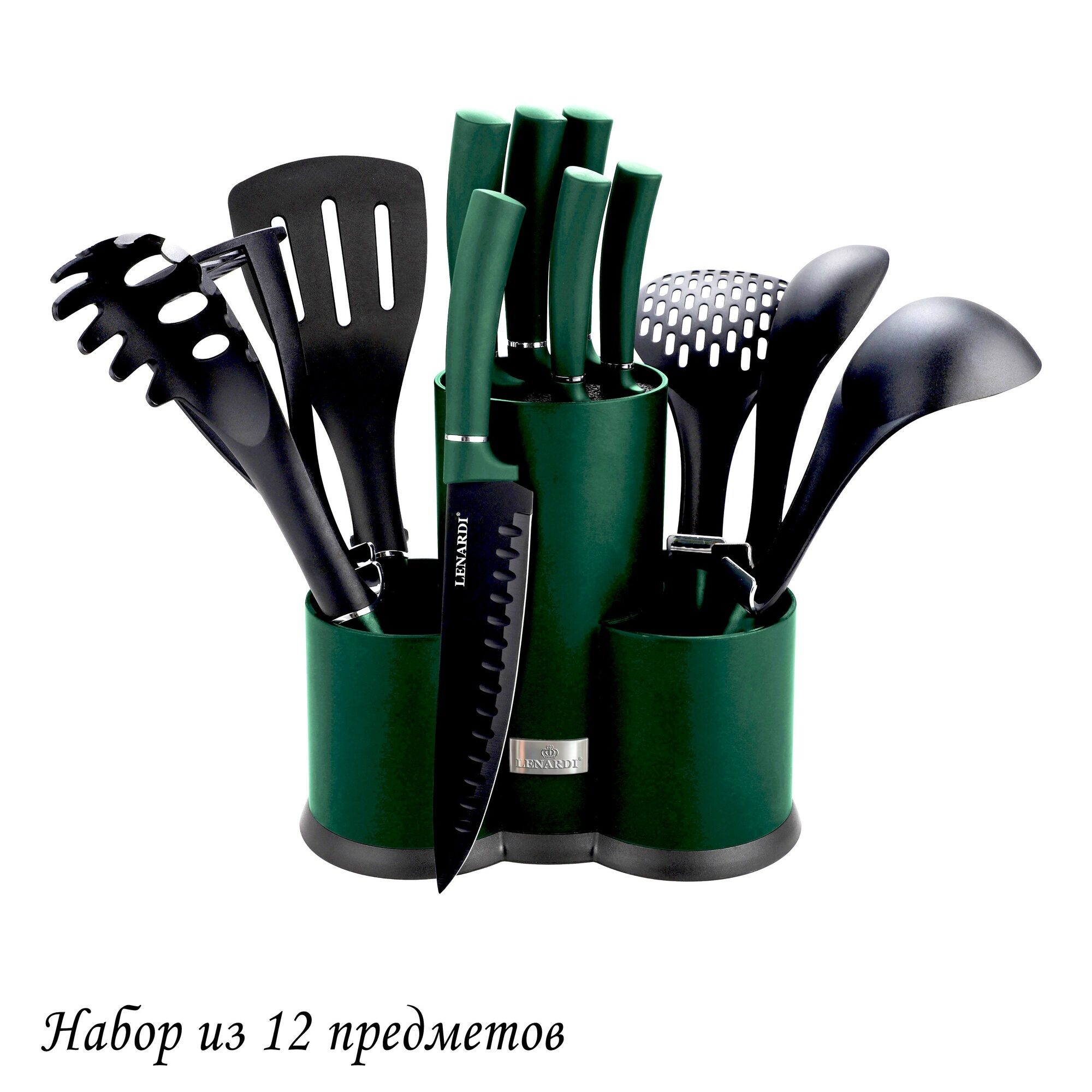 Набор ножей и кухонных принадлежностей 12пр. на подставке в подарочной упаковке нержавеющая сталь Lenardi
