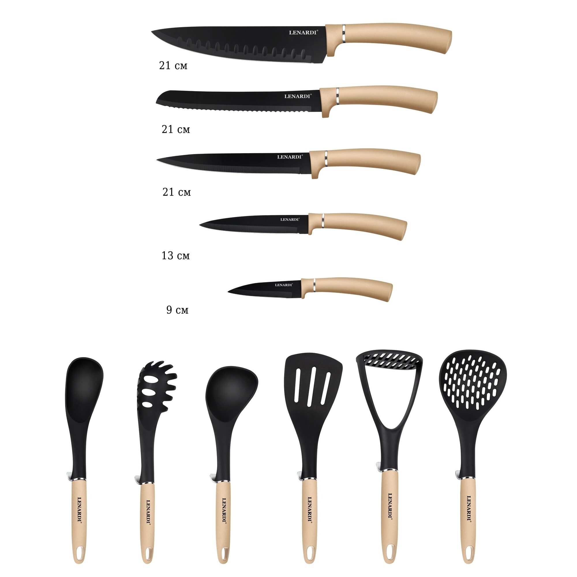 Набор ножей и кухонных принадлежностей 12пр. на подставке в подарочной упаковке нержавеющая сталь Lenardi