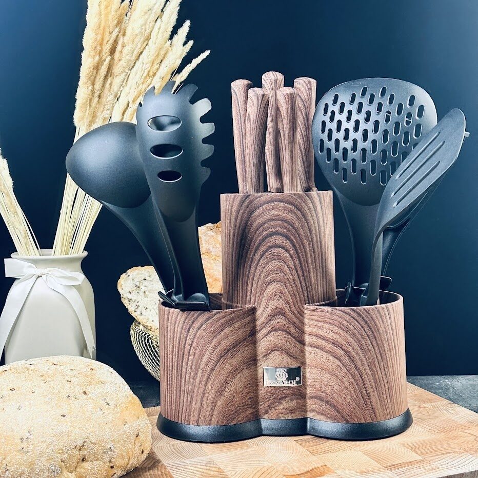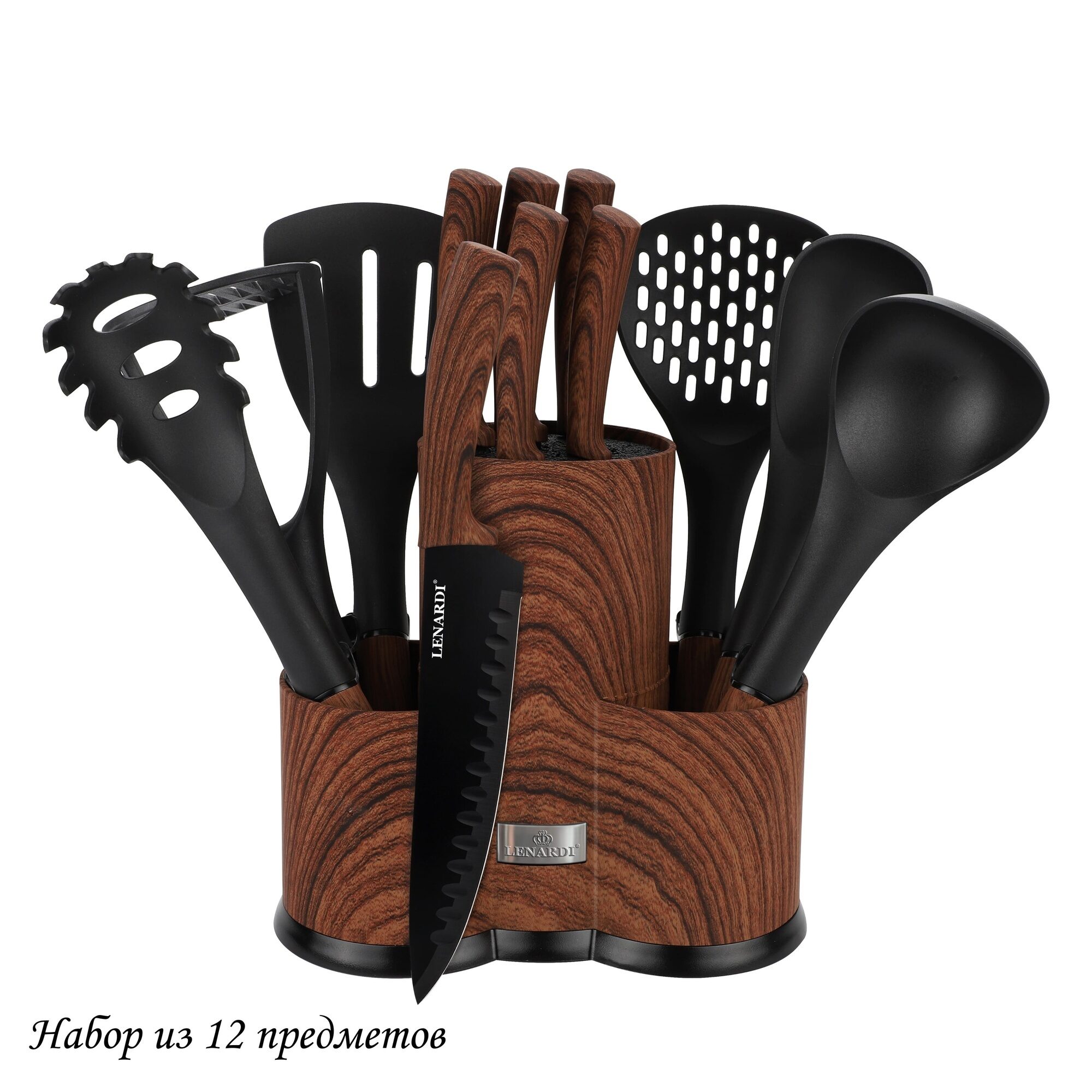 Набор ножей и кухонных принадлежностей 12пр. на подставке в подарочной упаковке нержавеющая сталь Lenardi