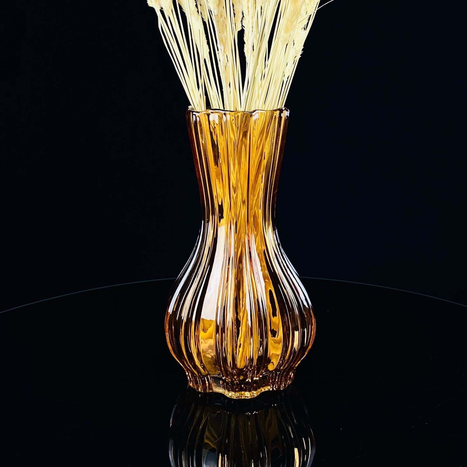 Декоративная ваза для цветов 20,5см в под.уп. стекло. Оригинальная настольная ваза изготовлена из цветного прозрачного стекла, имеет устойчивое дно и достаточно широкое горлышко. Вазу имеет рифленые и ребристые стенки, выполнена из толстого стекла, что гарантирует ее прочность и долговечность. Упаковано в подарочную коробку Материал: стекло Рекомендуется мыть вручную в теплой воде с жидкими моющими средствами. Не использовать абразивные материалы и агрессивную бытовую химию.