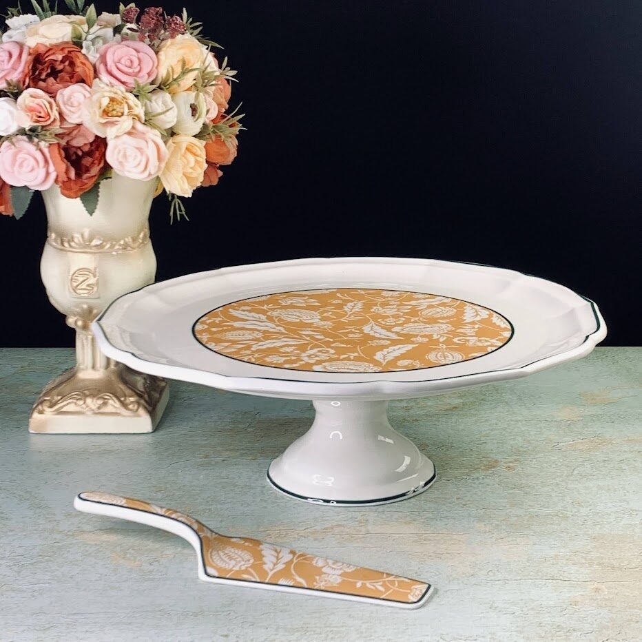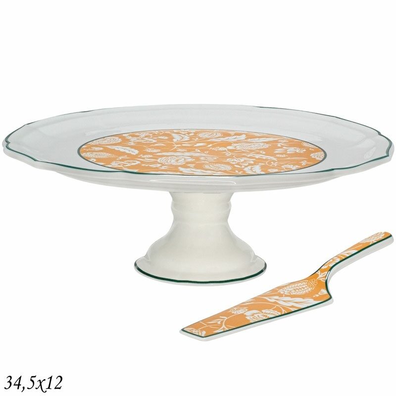 Тортовница 34,5х12см адонис на ножке с лопаткой в подарочной упаковке фарфор Lenardi