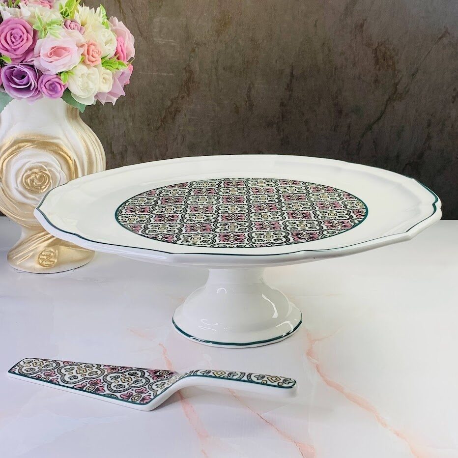 Тортовница 35,5см дария на ножке с лопаткой в подарочной упаковке фарфор Lenardi