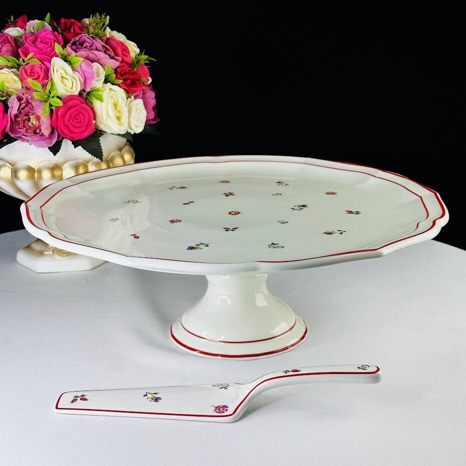 Тортовница 35,5см годжи на ножке с лопаткой в подарочной упаковке фарфор Lenardi