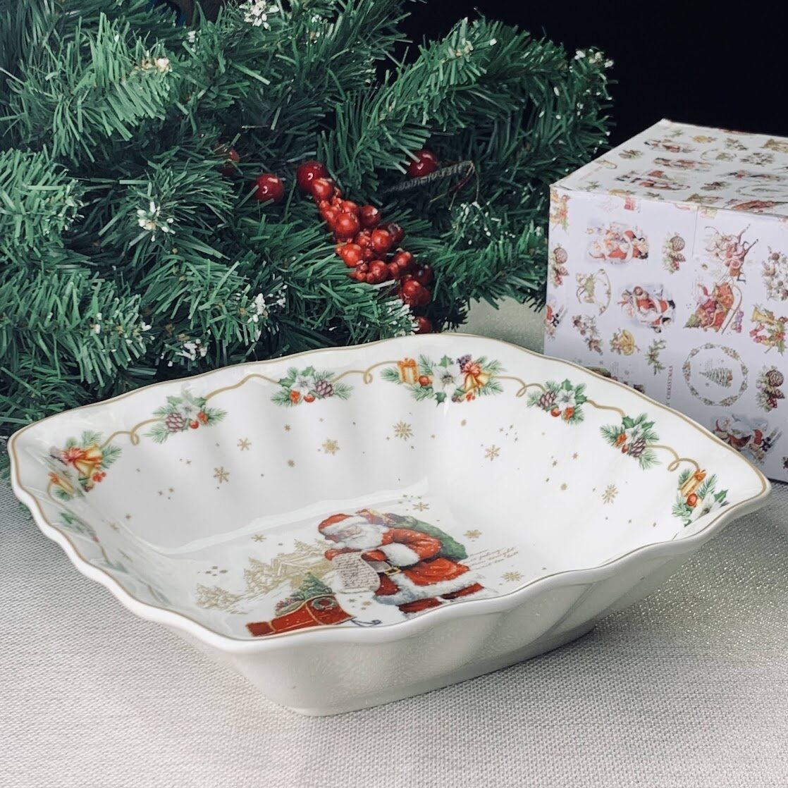 Квадратный салатник 23см новый год в подарочной упаковке фарфор Lenardi