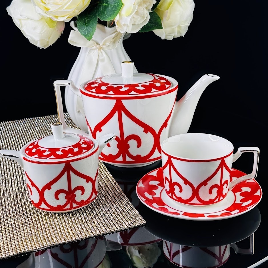 Чайный сервиз 14пр. в под.уп. фарфор. Наполнение: 6шт. чашки 240 мл 6шт. блюдца 15 см 1шт. заварник с крышкой 1,2 л 1шт. сахарница с крышкой 300 мл