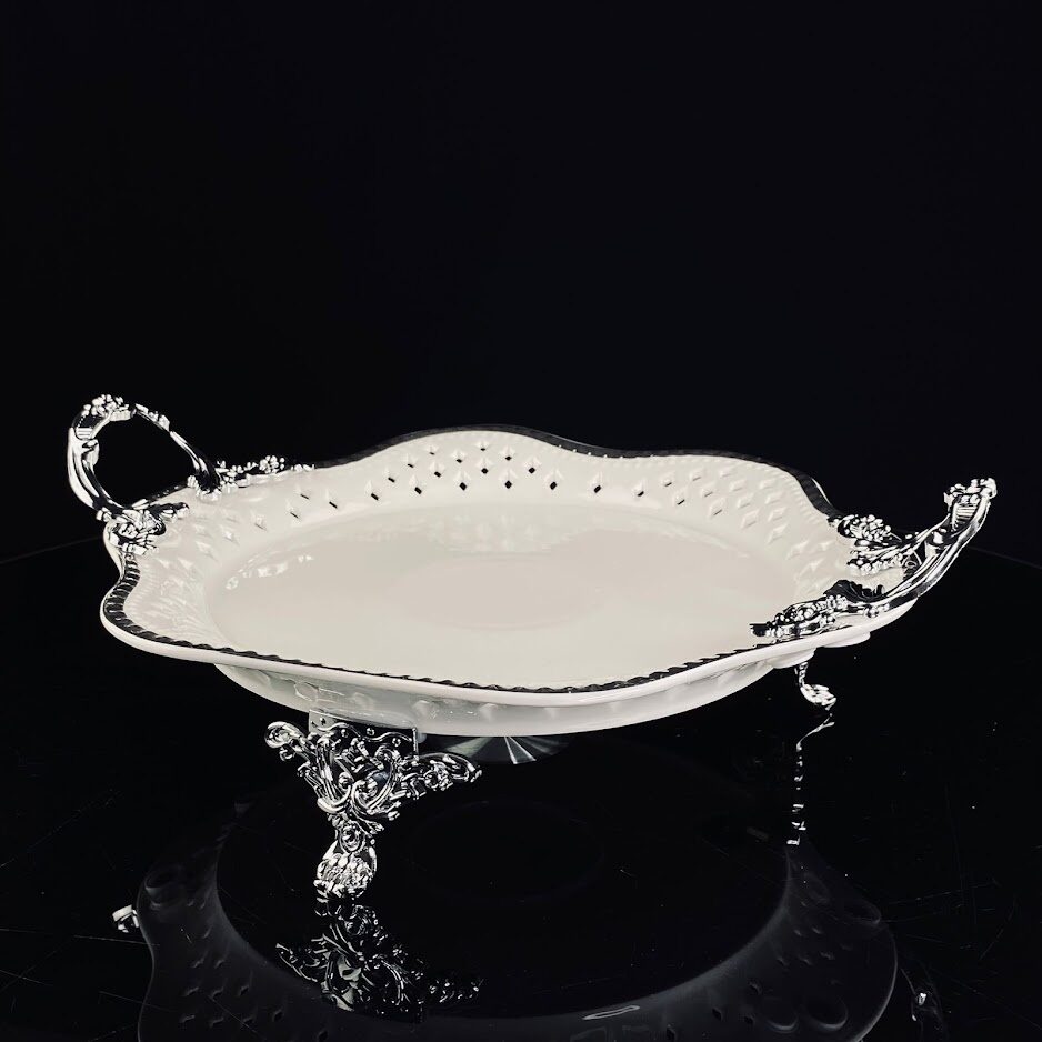 Блюдо 33см на ножках с ручками Atlantis в под.уп. фарфор
