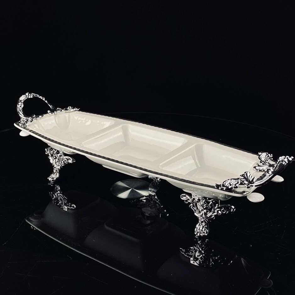 Менажница 35,5см на ножках с ручками Atlantis в под.уп. фарфор