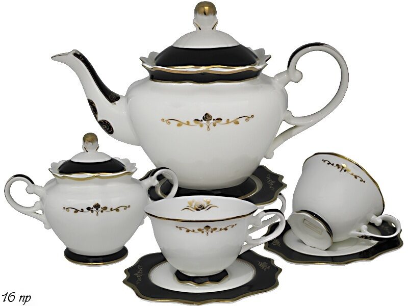 Чайный сервиз 16пр.180 мл rich в подарочной упаковке фарфор lenardi. Чайный сервиз 16 предметов Коллекций RICH отличается строгим дизайном, необычной формой изделий, непренужденным и легким золотым декором. Сочетание белого фарфора, черной деколью на борту с золотом делает эту коллекцию универсальной для любого дизайна гостинной. Роскошь этой посуды сомодостаточна. Состав коллекции: столовые и чайные сервизы, отдельные предметы. Наполнение: 6 шт- блюдце 6 шт- чашки 180 мл 2пр - заварник 1,25 л мл 1шт + крышка 1шт 2пр- сахарница 1шт + крышка 1шт Материал: фарфор Не рекомендуется использовать в микроволновой печи и мыть в посудомоечной мвшине, по причине возможного повреждения золотого декоративного покрытия.