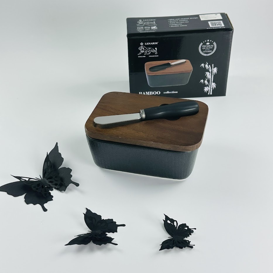Масленка 14см с крышкой и ножом blackwood в под.уп. фарфор. 10х14х6,5 320мл Коллекция BLACKWOOD выполнена из фарфора, покрытого черной глазурью. Сочетание матовых поверхностей с эффектной рельефной структурой, похожей на легкую шероховатость, делает эту коллекцию стильной и оригинальной. Часть предметов коллекции имеют элементы из натурального дерева. Материал фарфор Посуду можно мыть в посудомоечной машине за исключением деревянной предмета, можно греть в микроволновой печи