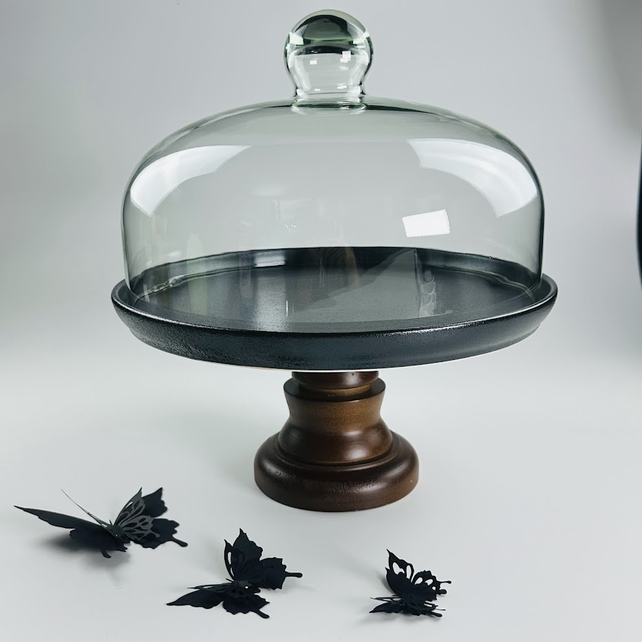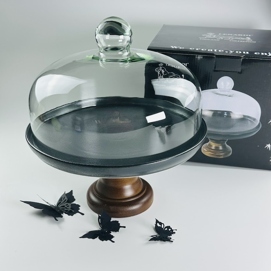 Тортовница 28см на ножке со стеклянной крышкой Blackwood в под.уп. фарфор