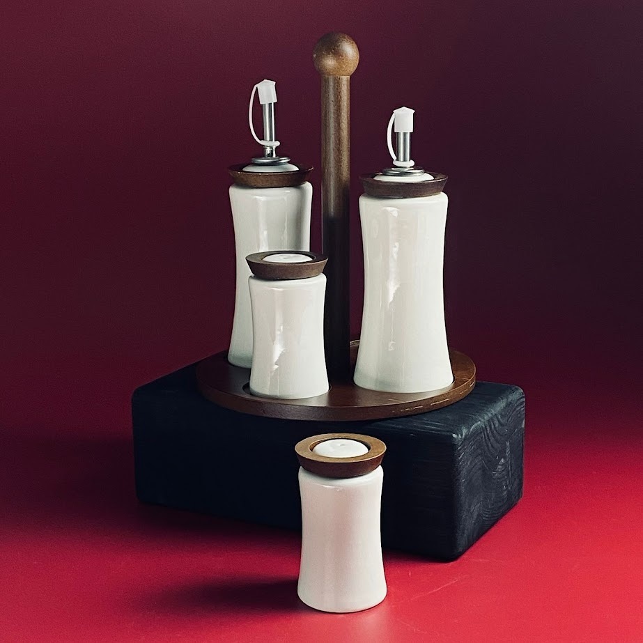 Набор солонок и бутылки для масла/уксуса 4пр. на подставке Tropical в под.уп. фарфор
