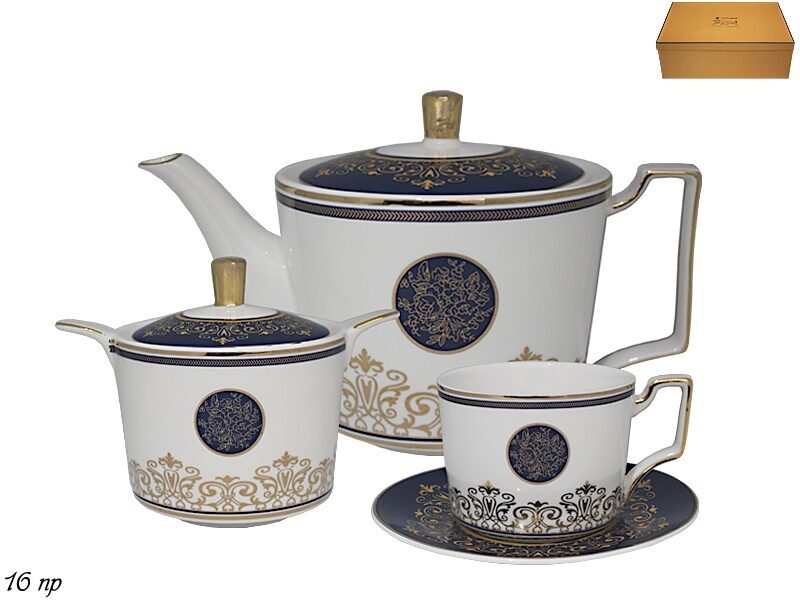 Чайный сервиз 16пр. 250 мл в подарочной упаковке lenardi. Чайный сервиз 16 предметов. Материал Фарфор. Упаковано в подарочную коробку. Наполнение: 6 шт- блюдце 6 шт- 250 мл чашки 2 пр- заварник 1200 мл-1 шт + крышка-1 шт 2 пр- сахарница- 300 мл 1 шт + крышка-1 шт