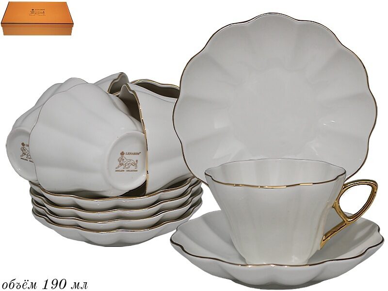 Чайный набор на 6 персон 12 предметов 190 мл в подарочной упаковке фарфор Lenardi