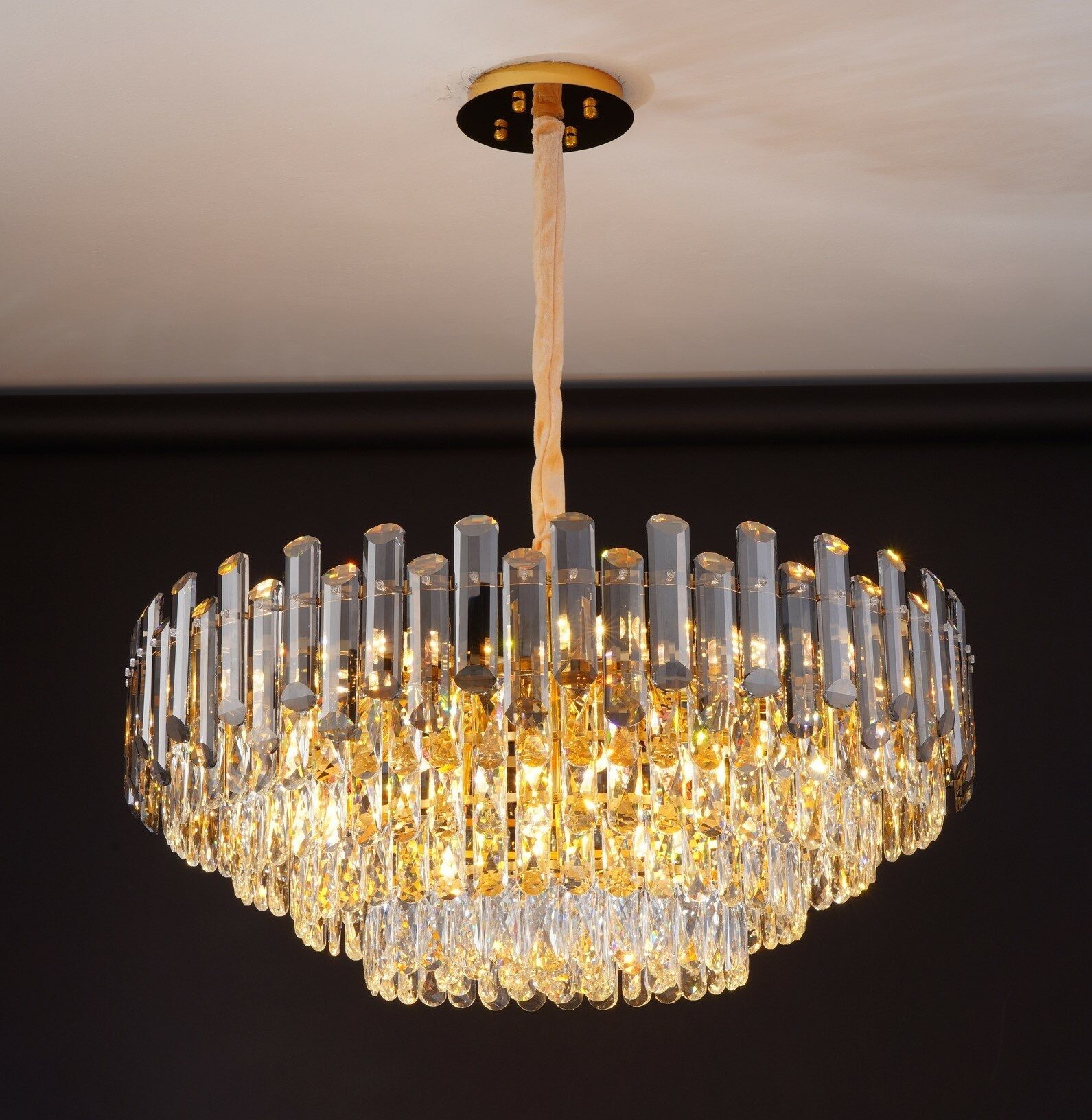 Люстра диам 60 см, выс. 30 см кристаллы, нержавеющая сталь Lenardi