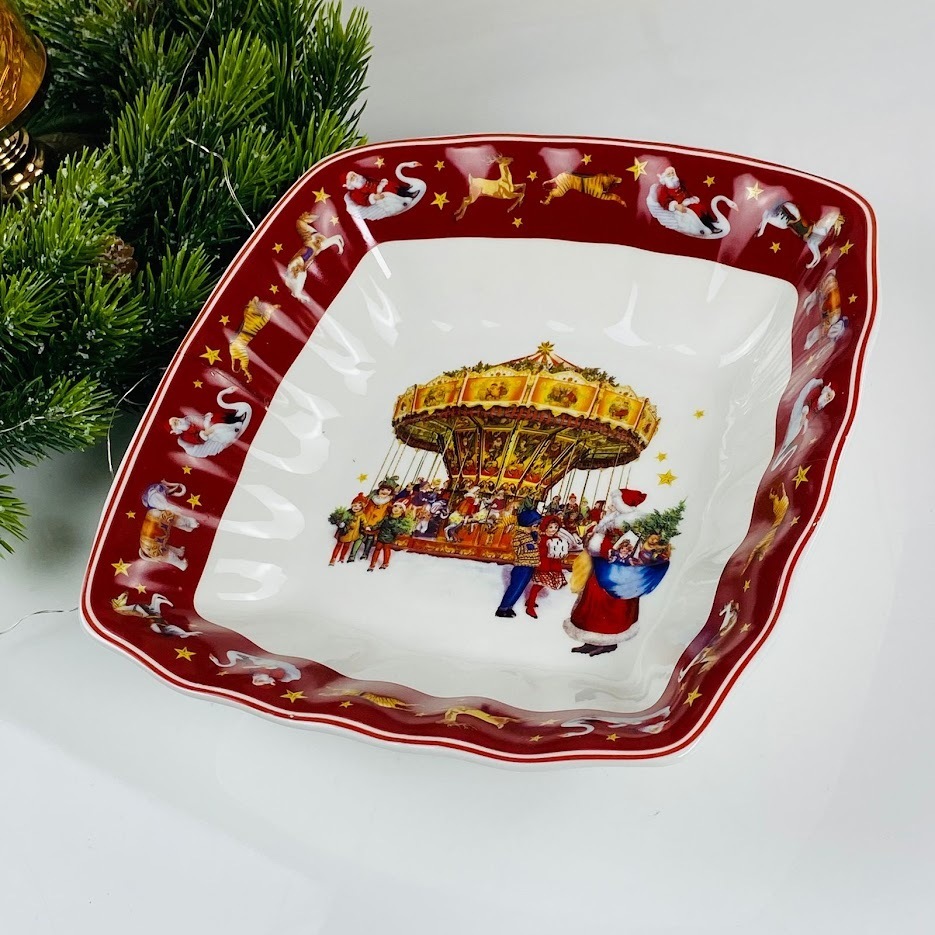 Квадратный салатник 23х6см новый год в под.уп. фарфор