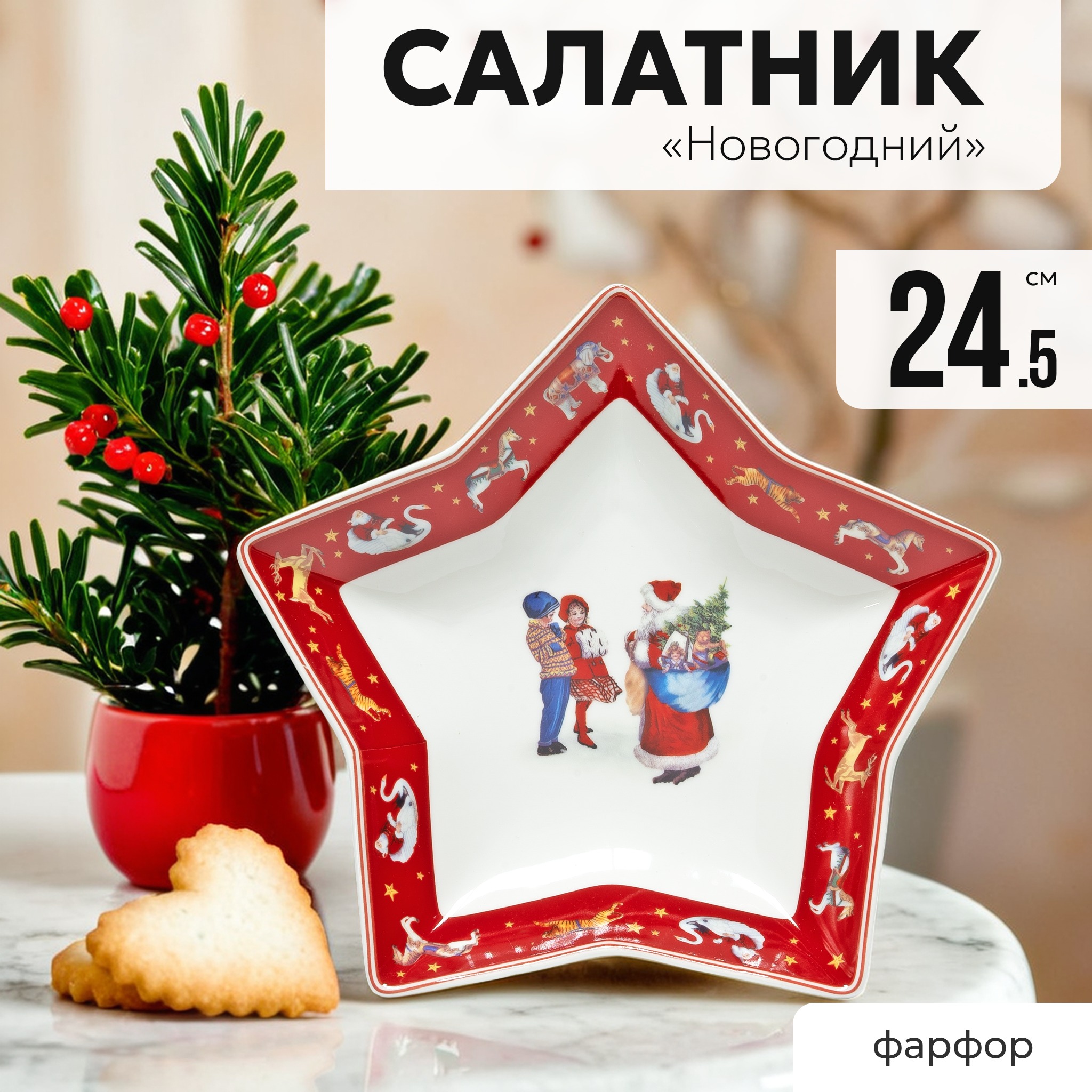 Блюдо 24,5х4 см новый год фарфор Lenardi