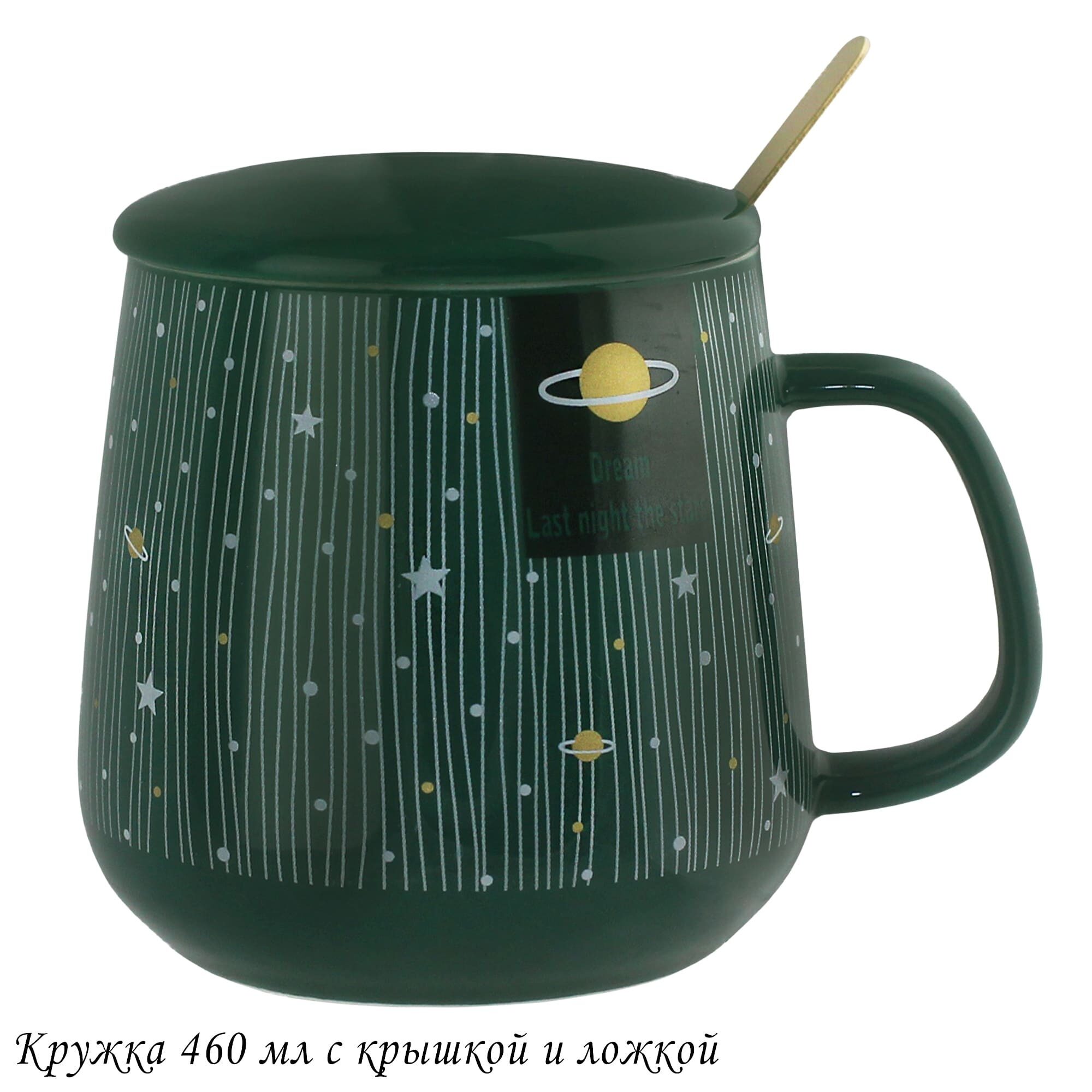 Кружка 420мл с крышкой и ложкой в под.уп. фарфор