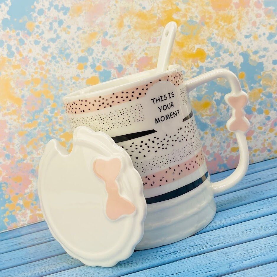 Кружка 400мл с крышкой и ложкой в под.уп. фарфор