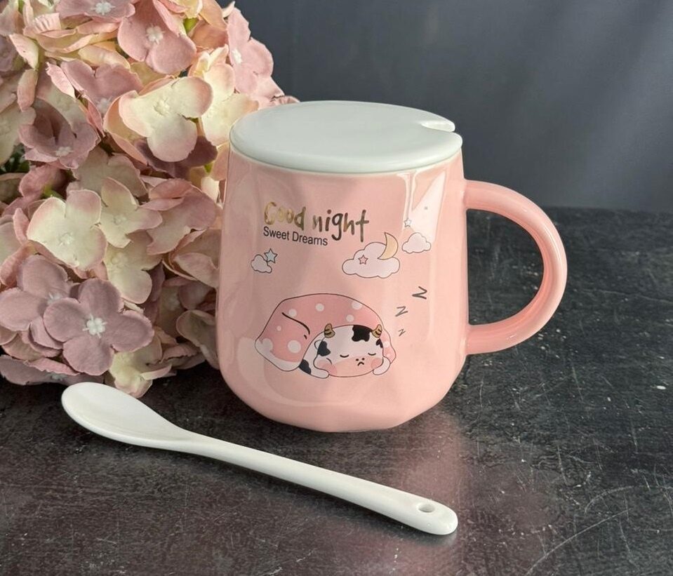 Детская кружка 420мл с крышкой и ложкой в под.уп. фарфор