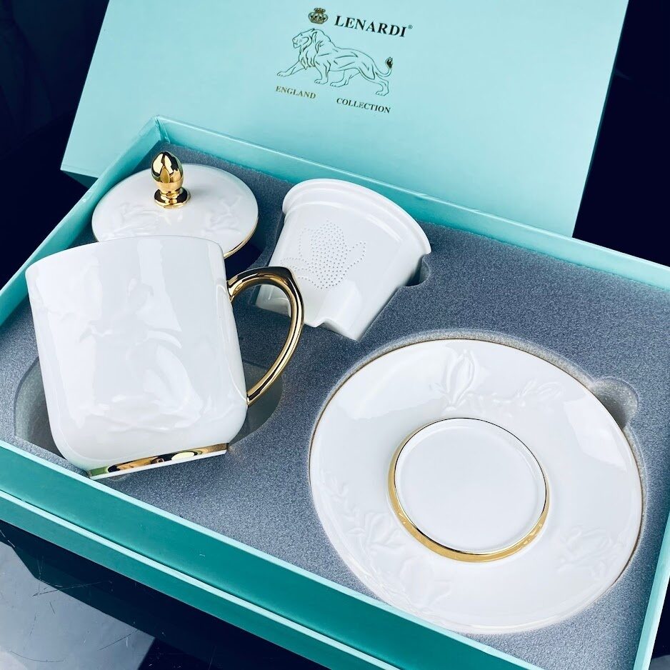 Заварочная кружка с крышкой и блюдцем в под.уп. костяной фарфор