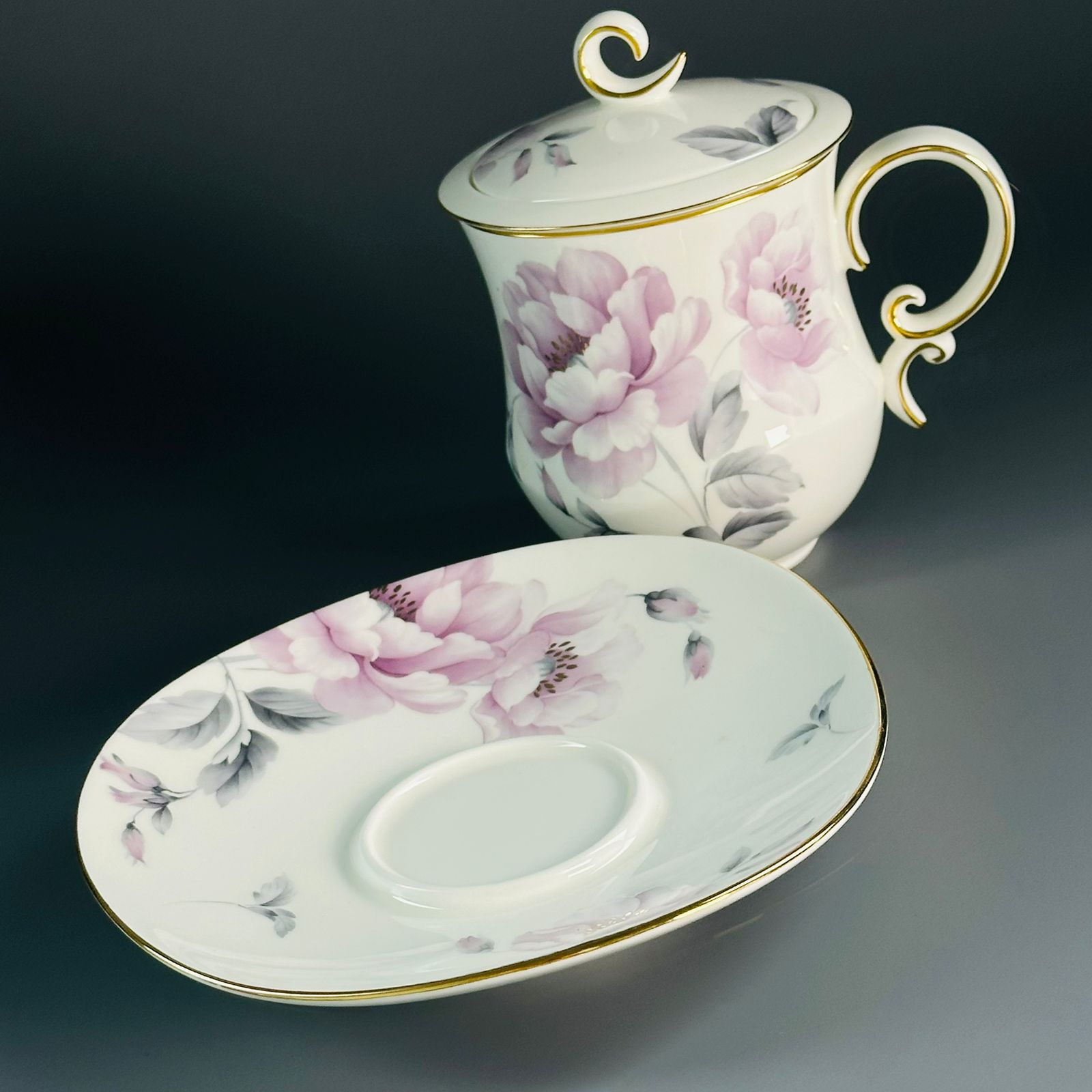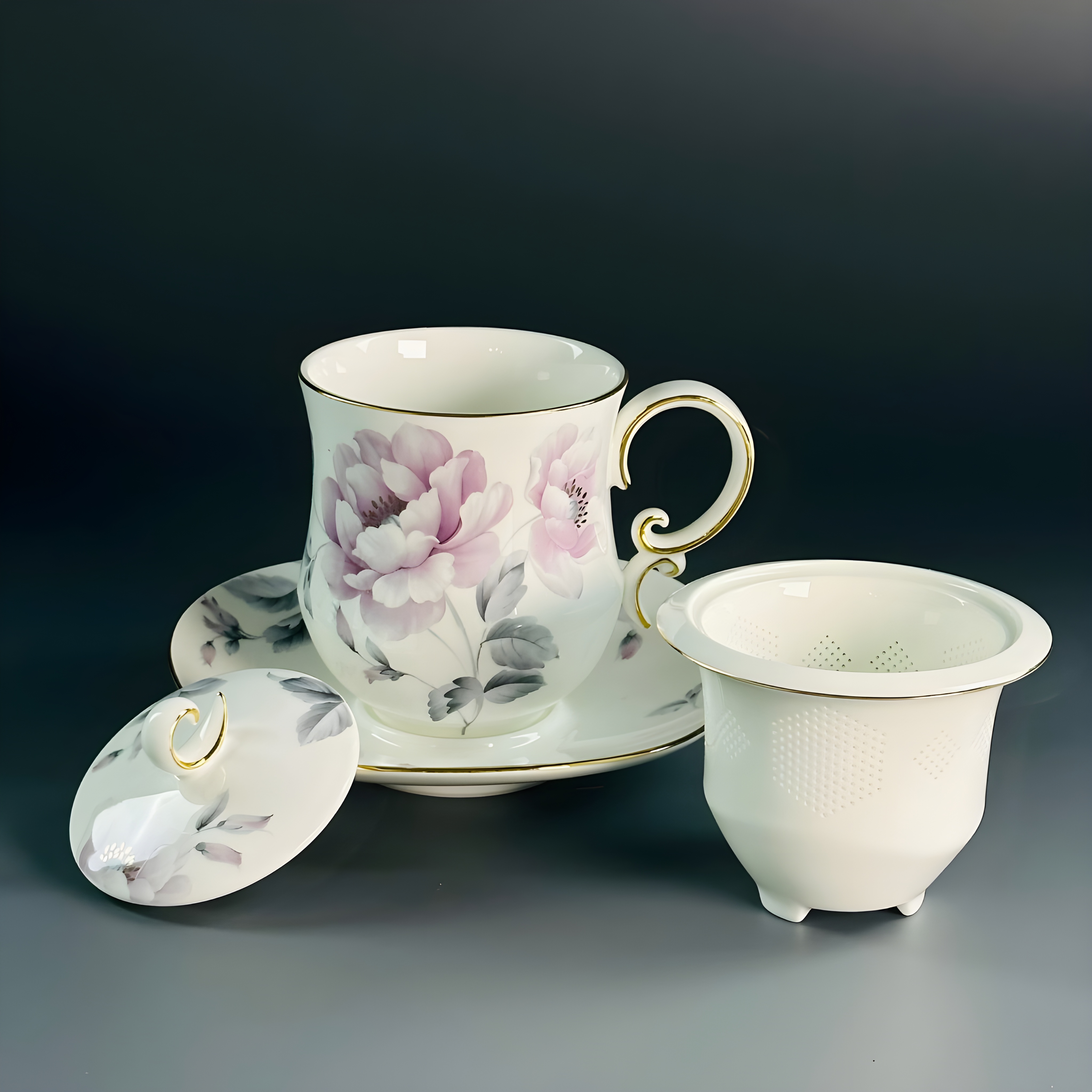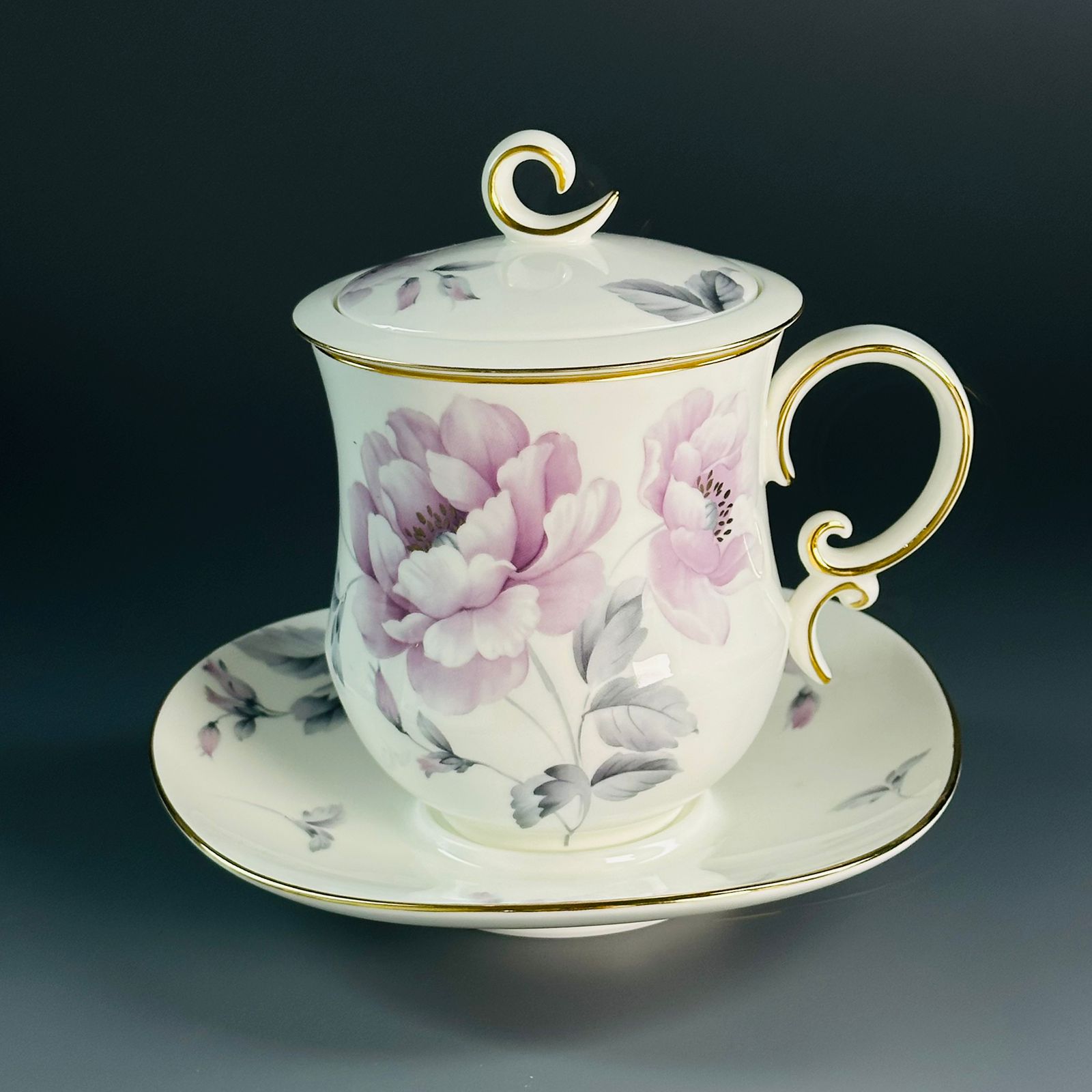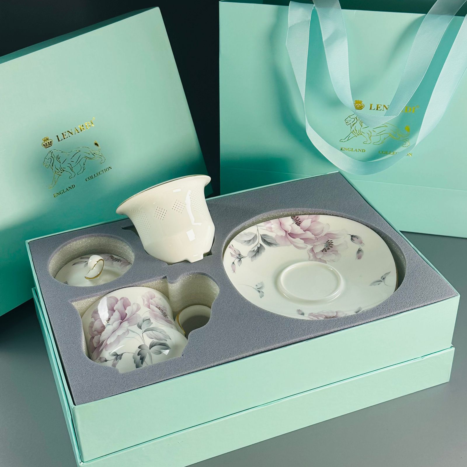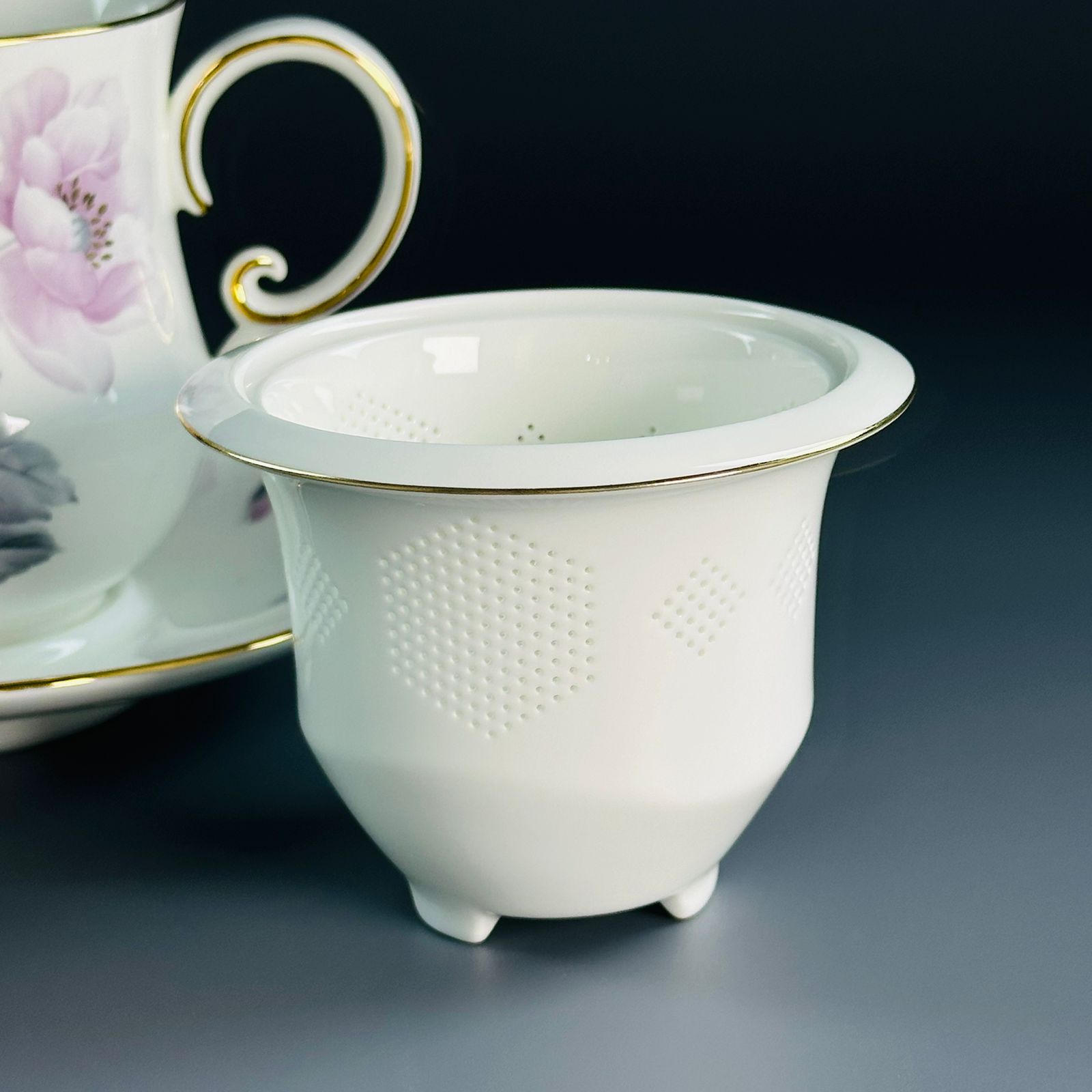Заварочная кружка 400 мл с крышкой и блюдцем костяной фарфор