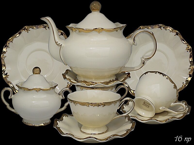 Чайный сервиз 16пр. 250 мл, josefine в подарочной упаковке фарфор lenardi. Чайный сервиз 16предметов Упаковано в подарочную коробку. Винтажная коллекция JOSEFINE изготовлена из высококачественного фарфора, покрыта эмалью благородного цвета слоновой кости. Тиснение золотом с эффектом объема по краю добавляет изящества и красоты. Молочный фарфор вне конкуренции! Наполнение: 6 шт. чашек 250 мл 6 шт. блюдец 1 шт. чайник 1025 мл 1 шт. сахарница Материал: фарфор Не рекомендуется использовать в микроволновой печи и мыть в посудомоечной машине, по причине возможного повреждения декоративного золотого покрытия.